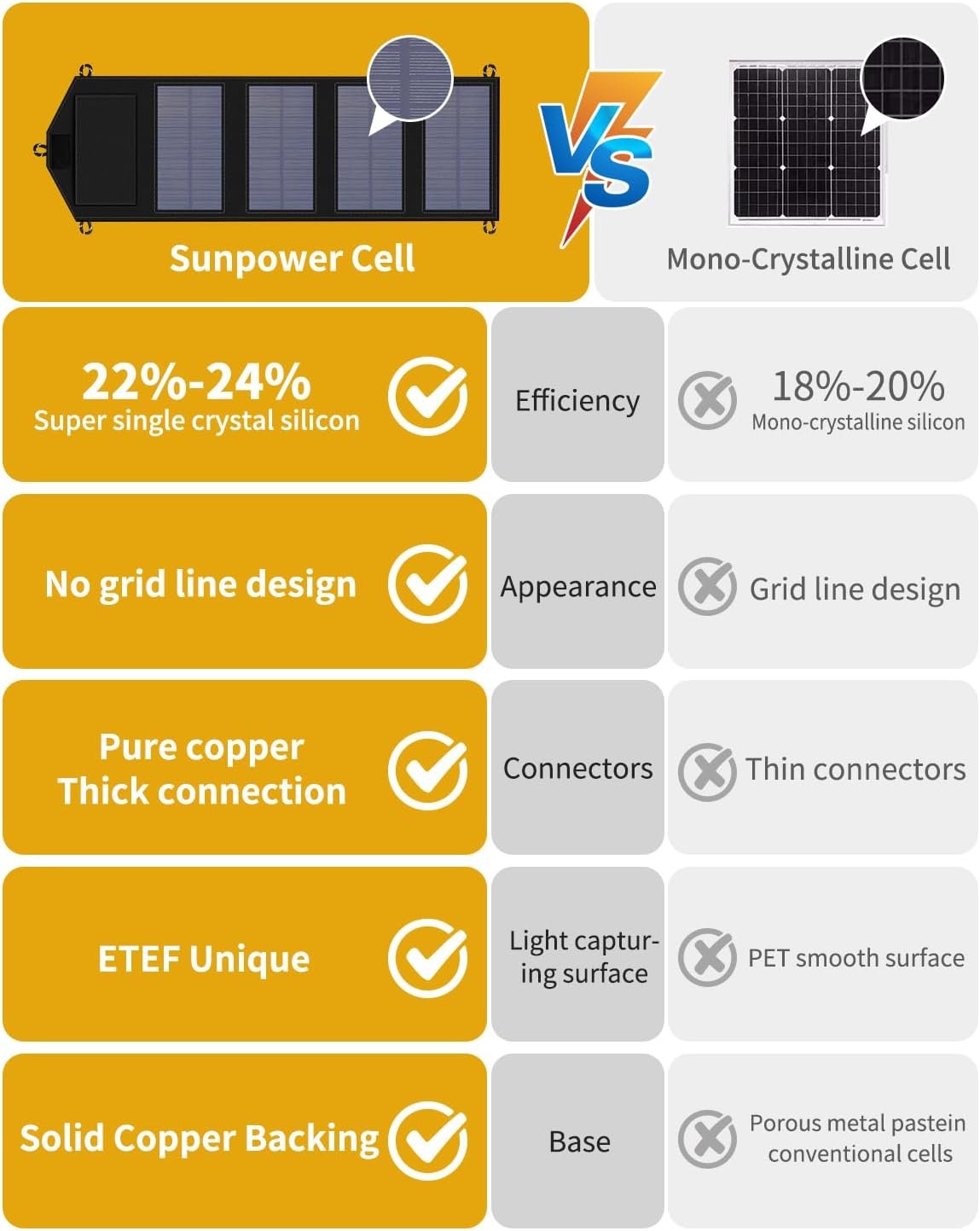 【Technology & Functionality:】Integrated IC automatically detects connected devices and provides optimized charging, with accompanying LED lights displaying charging status. FlexSolar ensures 100% safe charging with overcurrent, overheating, and short circuit protection