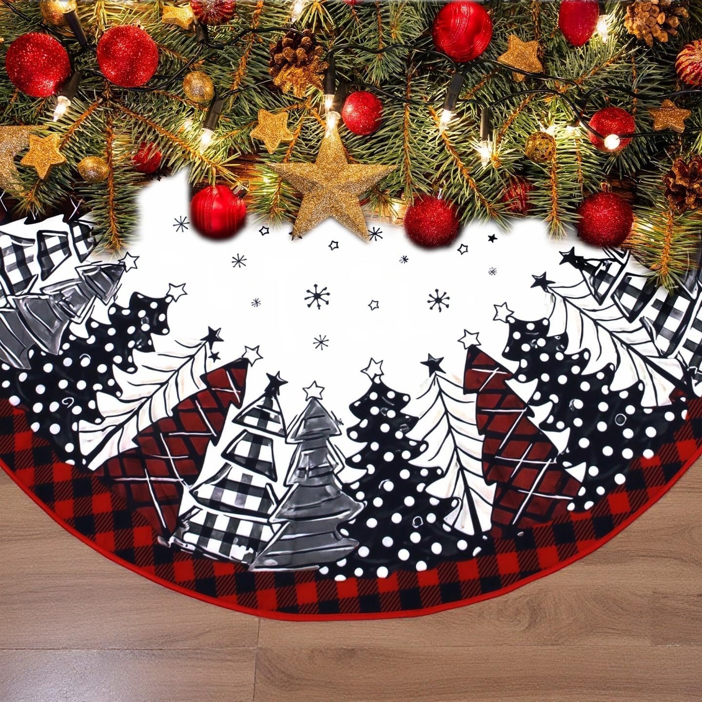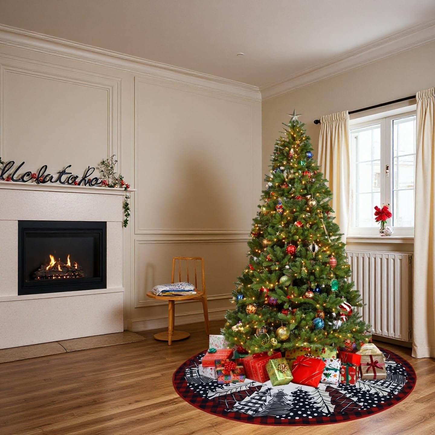 Classic Red & Black Plaid:The bold buffalo plaid pattern on the border complements the trees, offering a traditional and rustic feel, perfect for any Christmas theme or winter celebration
