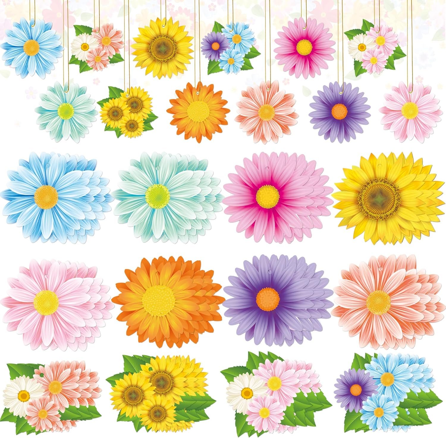 Delicate design: the sunflower and daisy flower theme hanging decor feature the clear prints, beautiful patterns, bright colors and thickness of 0.8 mm, these exquisite spring flower hanging ornaments can catch the eyes of your friends and family easily, bringing more happy time to your guests.