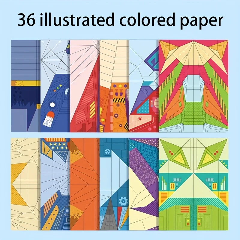 36 Sheets Children’s Paper Airplane Origami Set 12 Models DIY 3D Colored Papers STEM Science Kit for Kids Handmade Craft Kit Toy