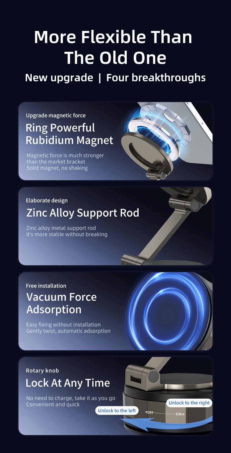 360° Rotate Strong Magnetic Car Phone Holder Adjustable Foldable Portable Holder for All Smartphones & Car Models Lazy Holder