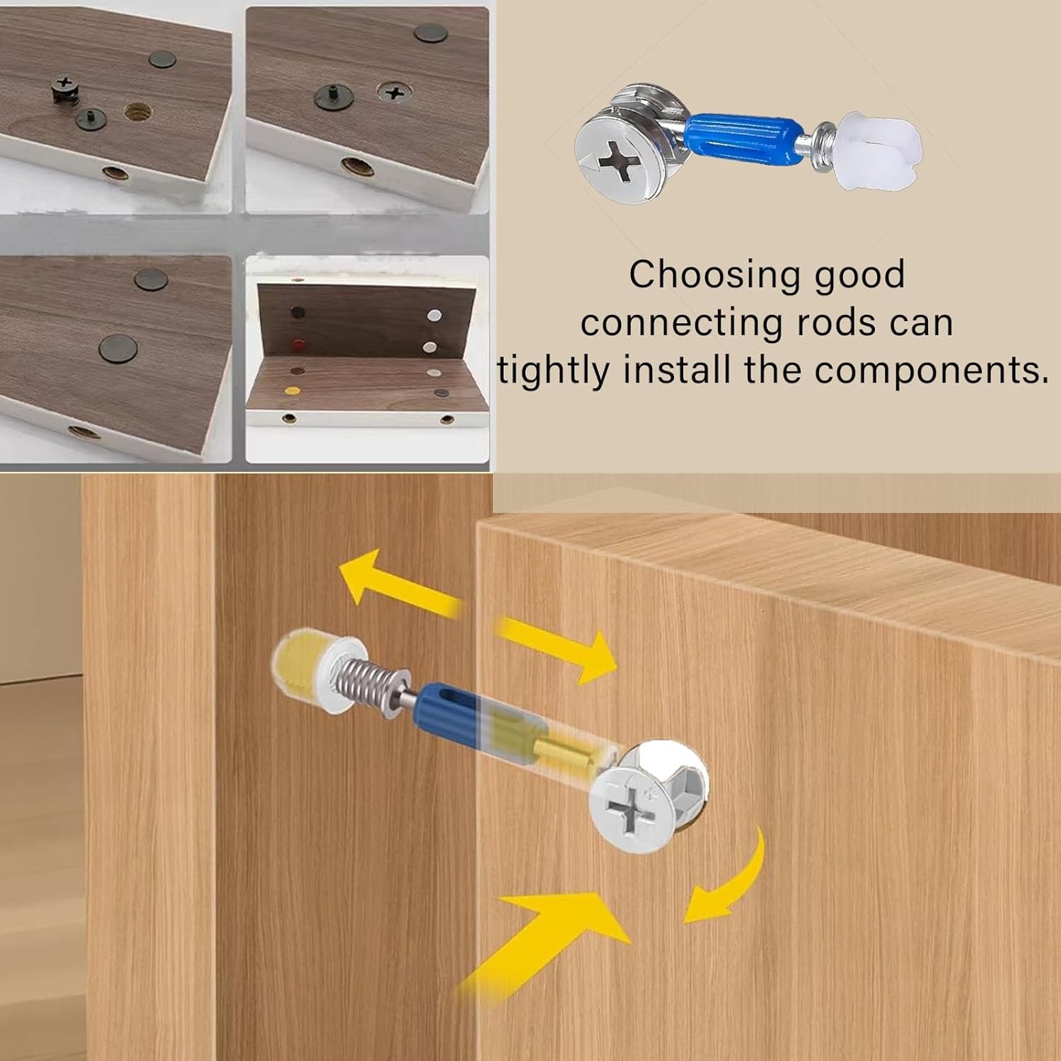 DURABLE CONSTRUCTION: The three in one connection cam lock screw is made of high-quality metal material, wear-resistant and rust proof, which is can be used in harsh environments of humidity or high temperature for a long time.