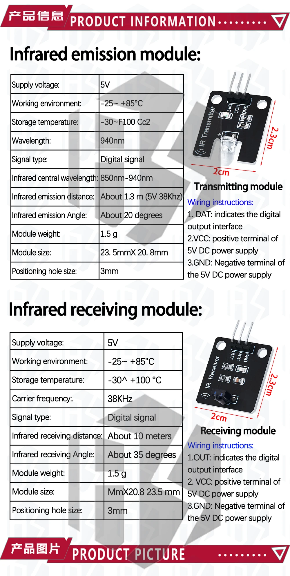 38kHz IR Transmitter & Receiver Module Kit for Arduino – Infrared Sensor Compat DIY Electronics, Robotics Projects (1Set)