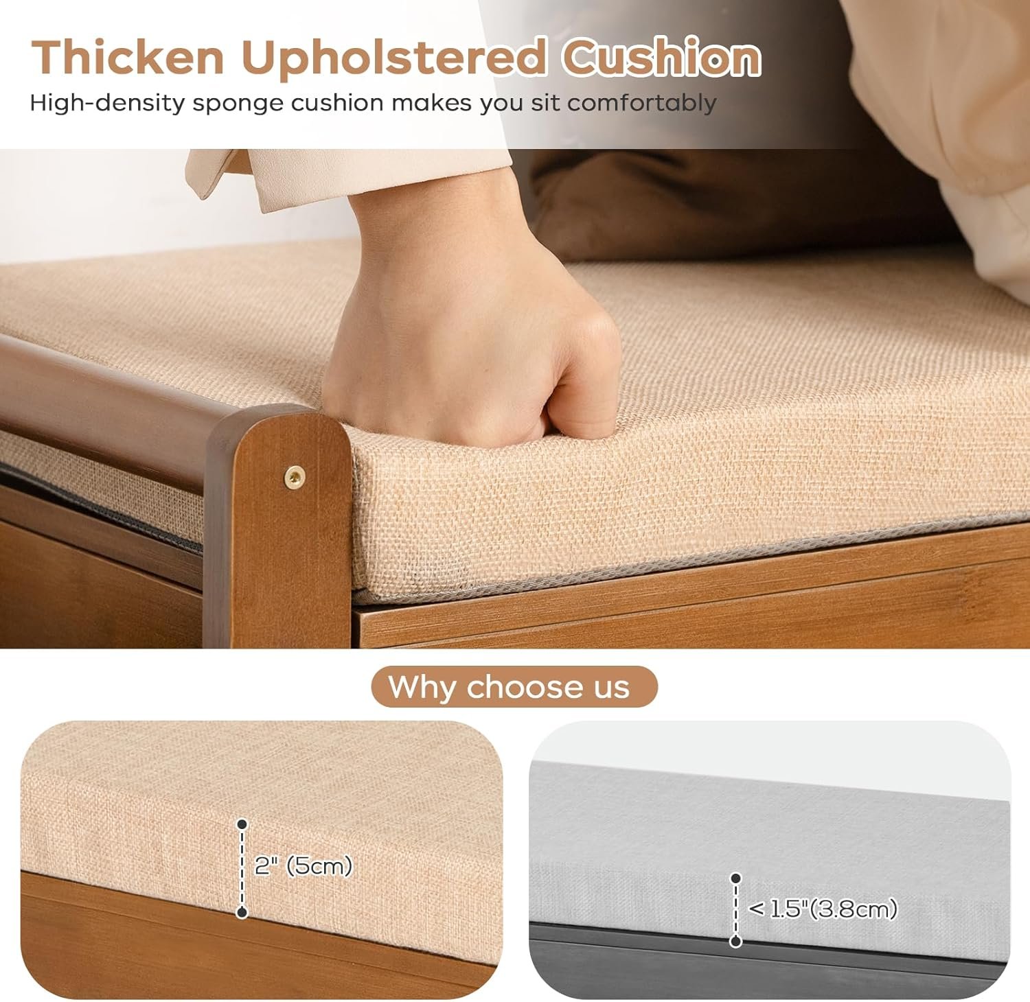 【Shoe Rack Orangizer with Removable Cusion 】The seat cushion is made of soft sponge and covered with high-quality breathable linen fabric, which is easy to remove and clean, so you can sit comfortably and tie your shoelaces easily. The entrance shoe storage bench provides you with a comfortable and convenient shoe changing experience. There are two armrests on both sides of the shoe rack bench to facilitate the movement of the shoe storage bench