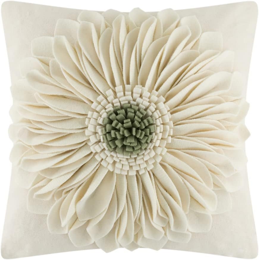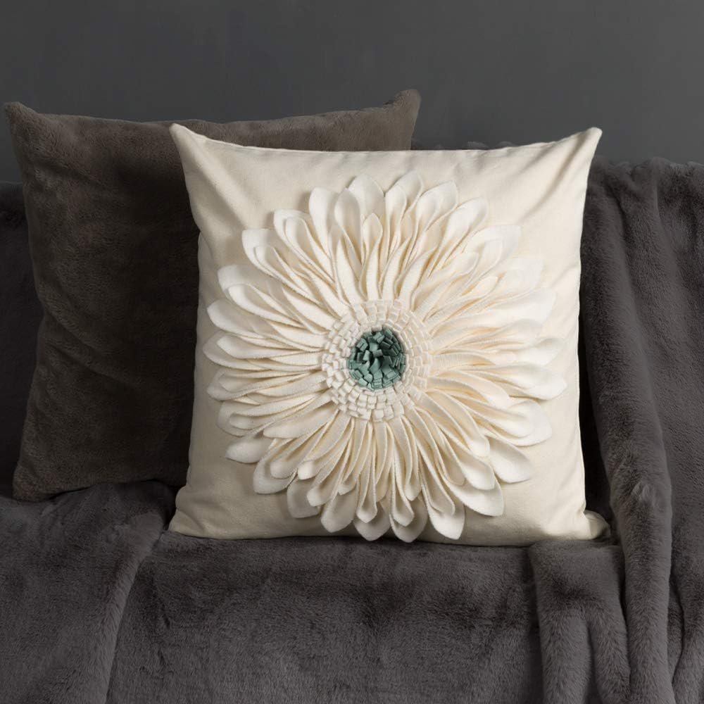 3D Sunflower Handmade Throw Pillow Covers Decorative Floral Pillowcases Cushion Covers for Couch Living Room Home Decor Creamy White 18×18 Inches