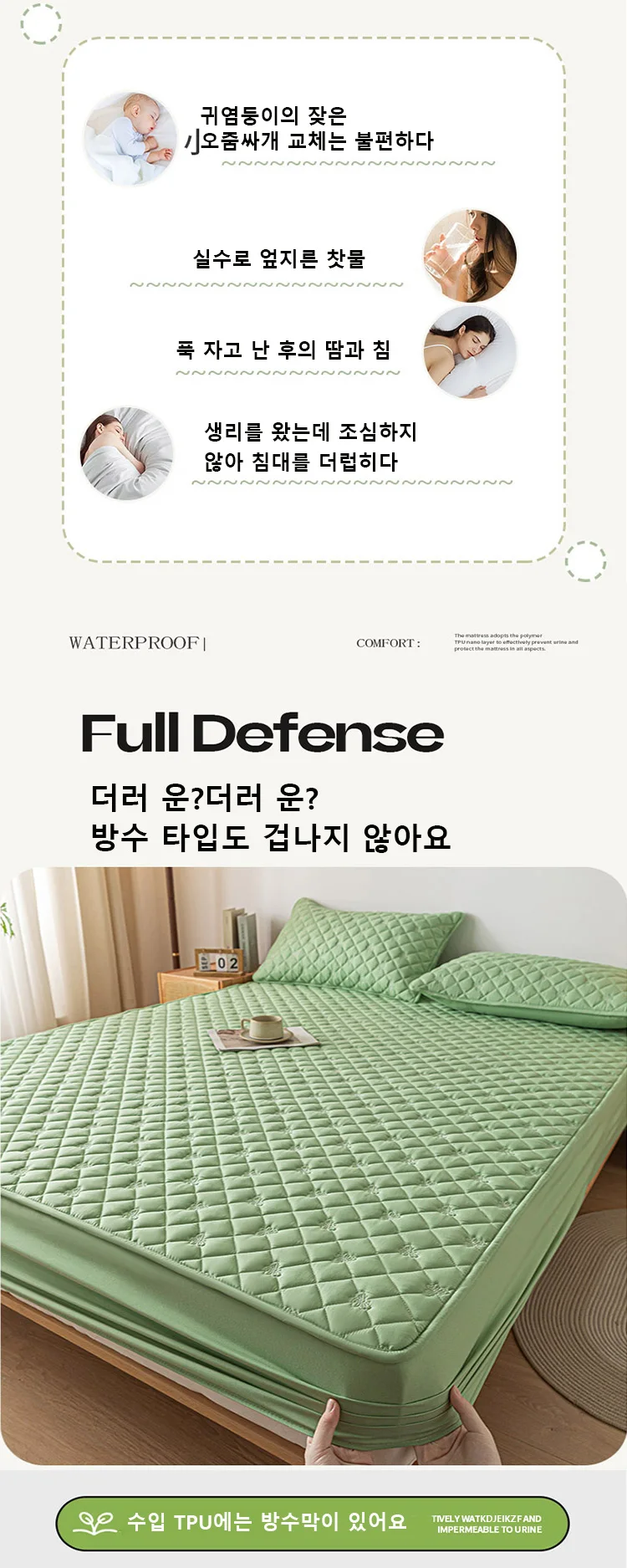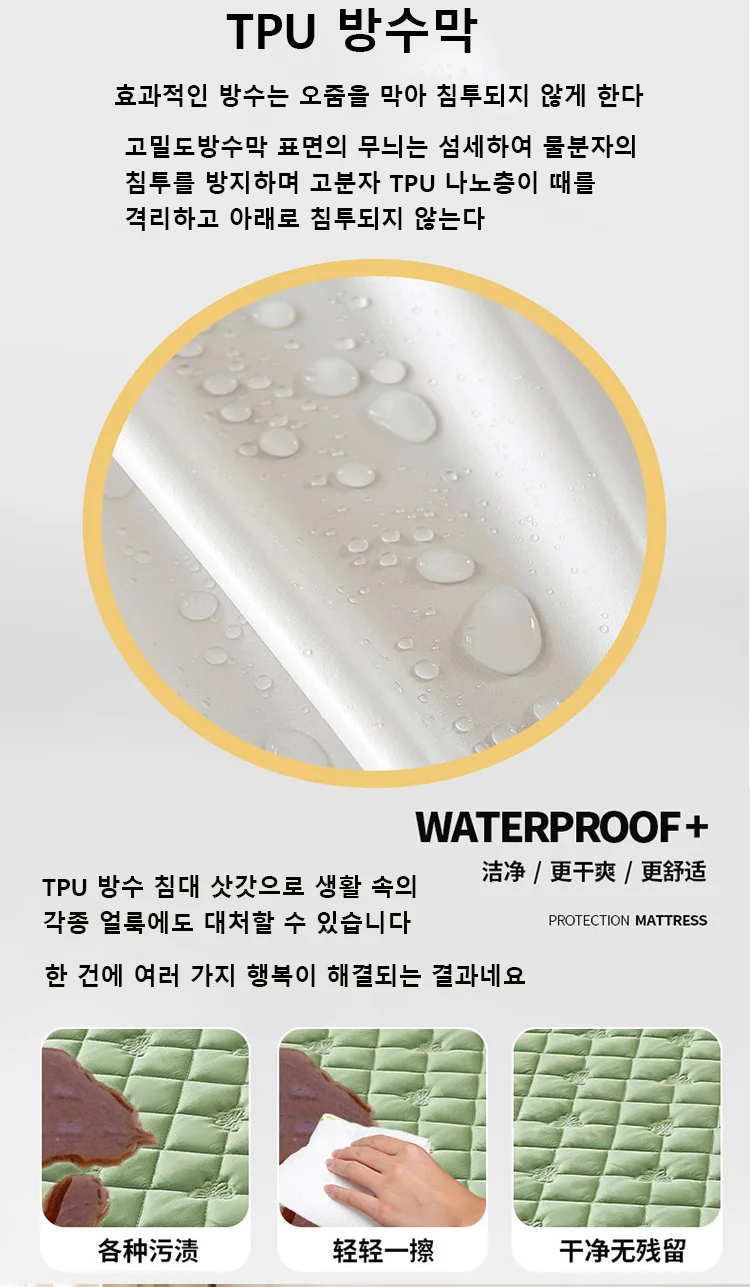 This mattress cover lined by premium water-resistant TPU membrane backing, which protects your pricey mattress against sweat, urine and other fluid spills.