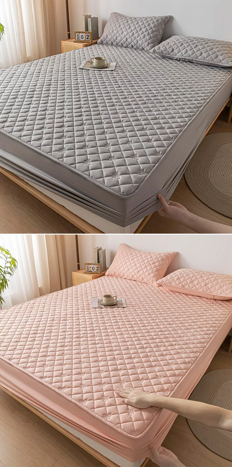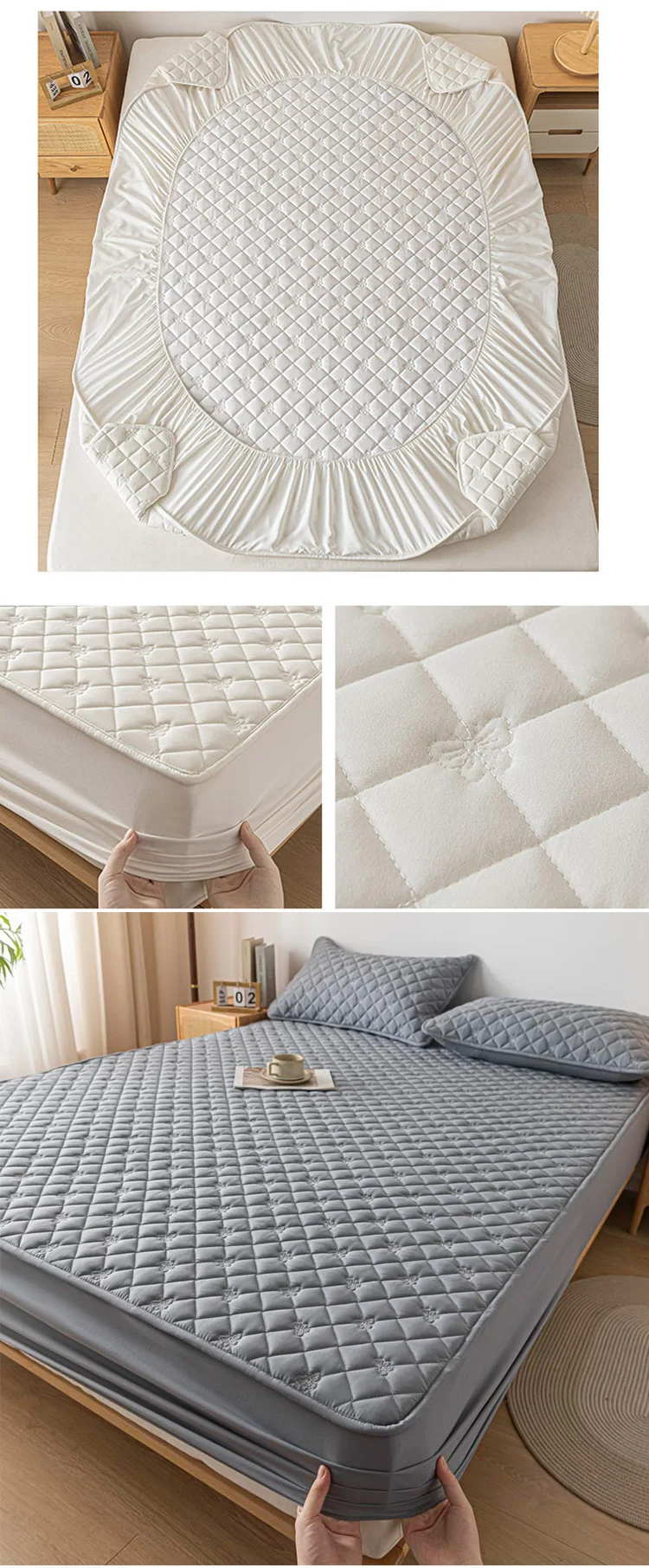 3D Thickened 100% Waterproof Mattress Cover, Bed Sheet Mattress Protector, Soft And Breathable Bed Sheet, Pillowcase Gray/White