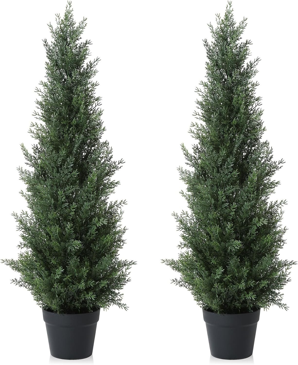The artificial topiary cedar trees for outdoor are set of 2, perfect for many years of artificial outdoor indoor use, would be a perfect gift for your family and friends