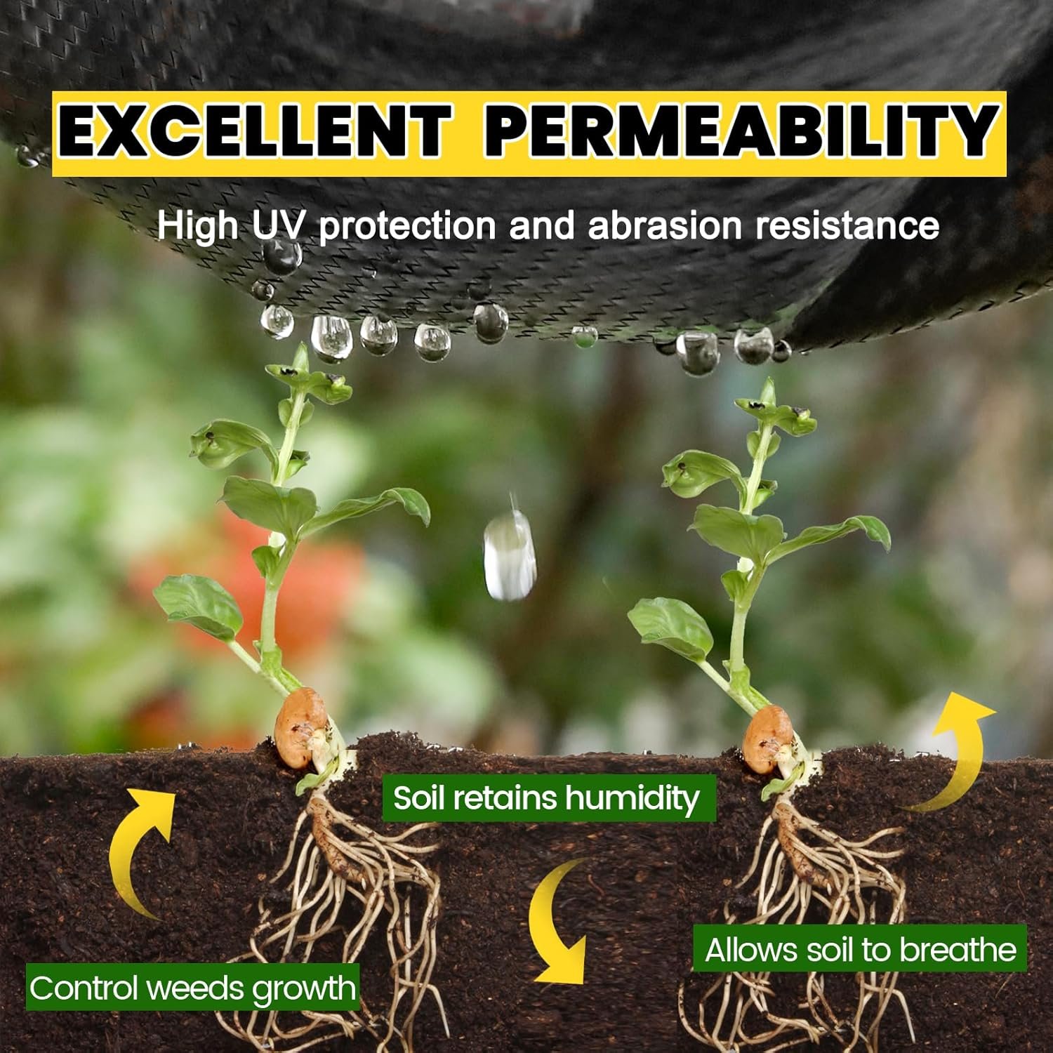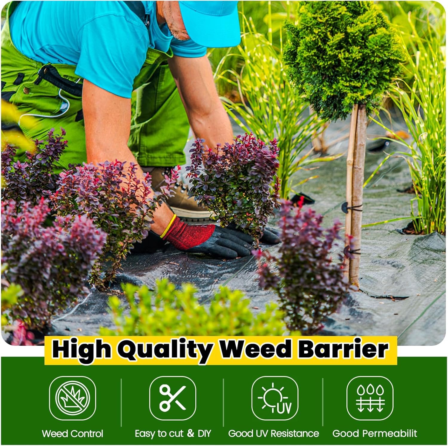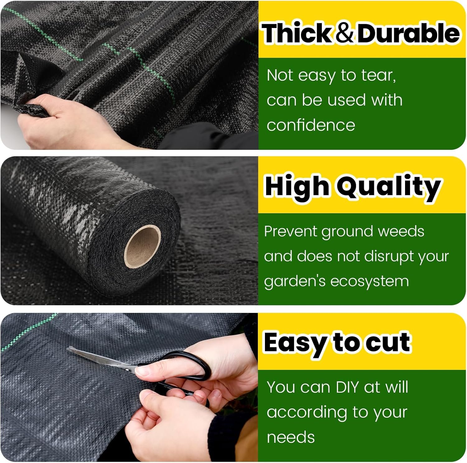 Durable Weed Barrier:Made of 3.2oz high-density woven PP material, Grassclub weed barrier landscape fabric is perfect for preventing weeds and impurities from soil erosion. This 900 Sq.ft fabric ensures excellent coverage that can be easily cut to suit various needs, such as gardening, agriculture, drainage, and driveway stabilization