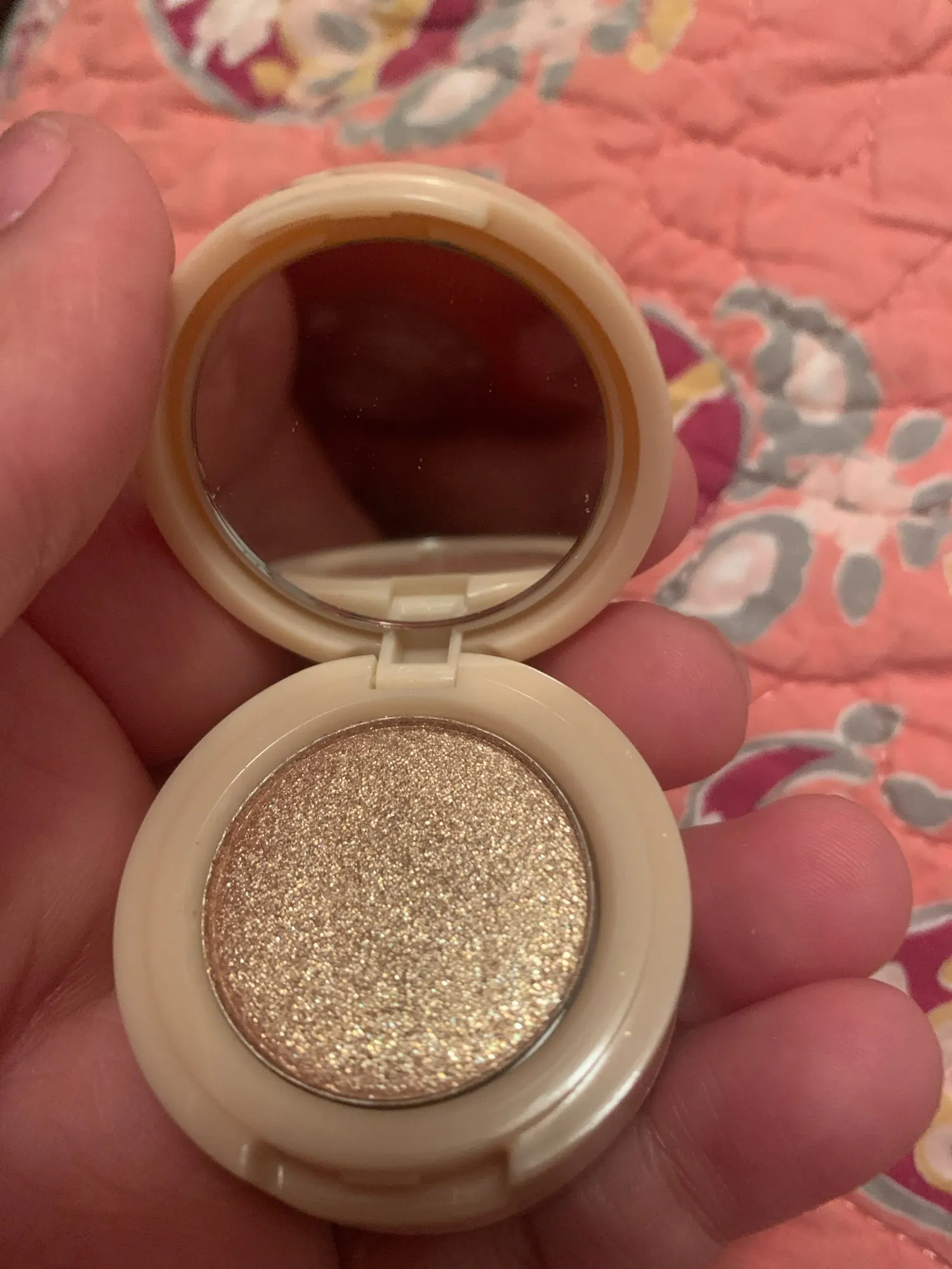 Very small and compact but has 3 beautiful colors for highlighter. Perfect to take with you in your purse for a night out or travel.