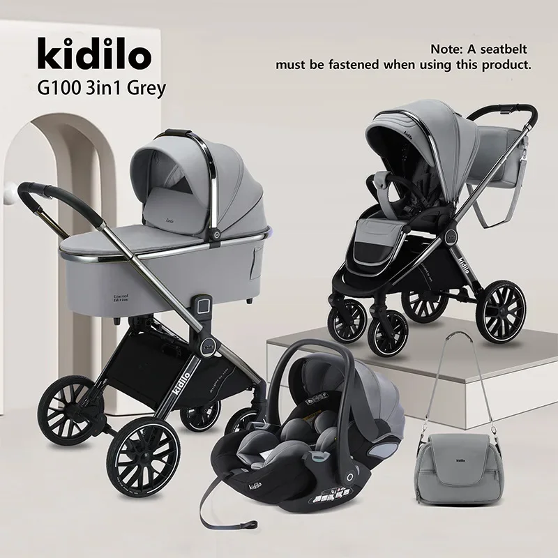 3IN1 High Landscape Baby Cart with Safety Seat, Bidirectional Baby Cart, One Button Folding, Comes with Mommy Bag