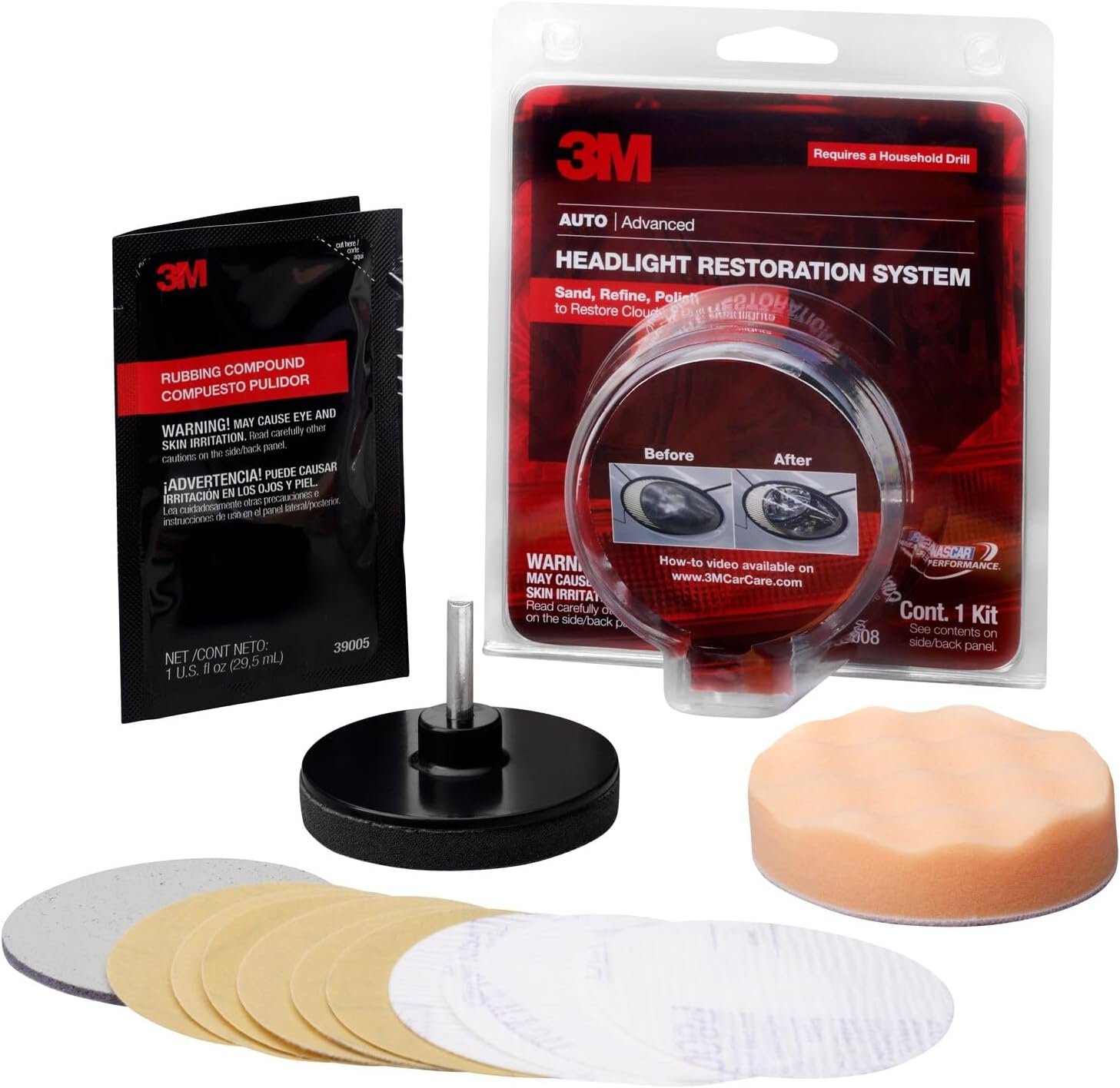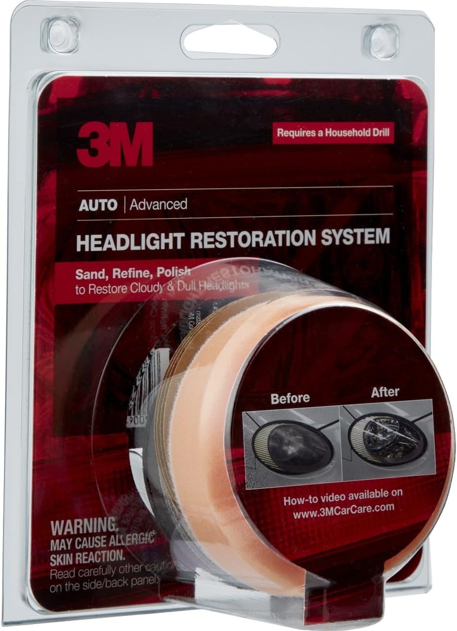3M science has created a way to restore your headlights to look like new. Designed specifically for the harshest yellowing, the 3M Headlight Restoration system is powered by drill-activated sanding sheets to provide maximum clarity and improved brightness.