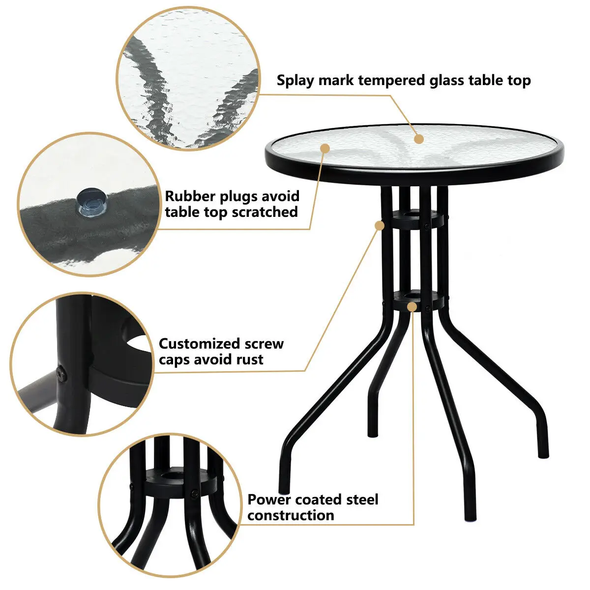 Enjoy outdoor leisure time with our beautiful yet practical 3pc bistro table set. Bistro sets are perfect for outdoor and indoor use. And it offers you a quiet, cozy space to host a conversations, read a book, enjoy morning coffee or whatever else you like. Lightweight and constructed of breathable fabric and durable steel, which ensure it can last throughout the seasons. Besides, the table with elegant glass top which ensures practical and decor. This bistro set is best decor to your garden and give your guest a deep impress. It’s also versatile, simply add some throw pillows to add color and pattern, or you can mix and match this outdoor patio furniture with other pieces from the collection. Plus, the chair is foldable and you can use it alone So, buy it now, it would never let you down.