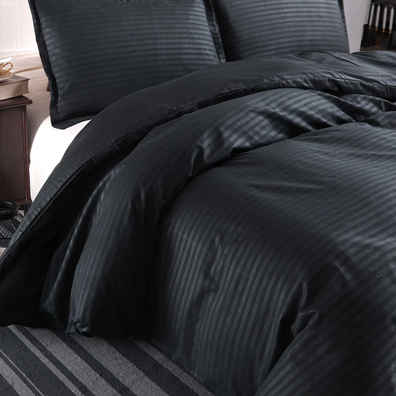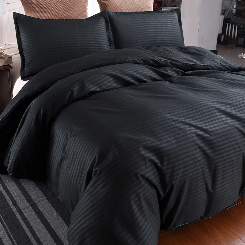 3PC Satin Black Duvet Cover Set Comfortable Bedding (Duvet Cover*1+Pillowcase*2) Bedroom Home Decoration Without Padding/Core