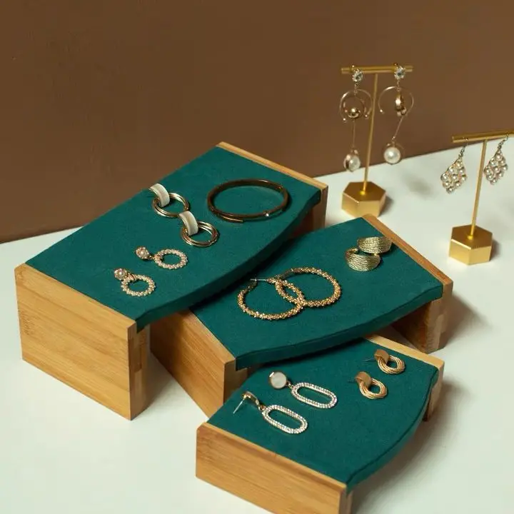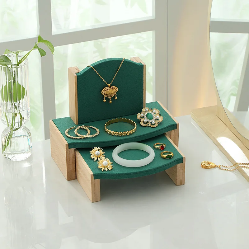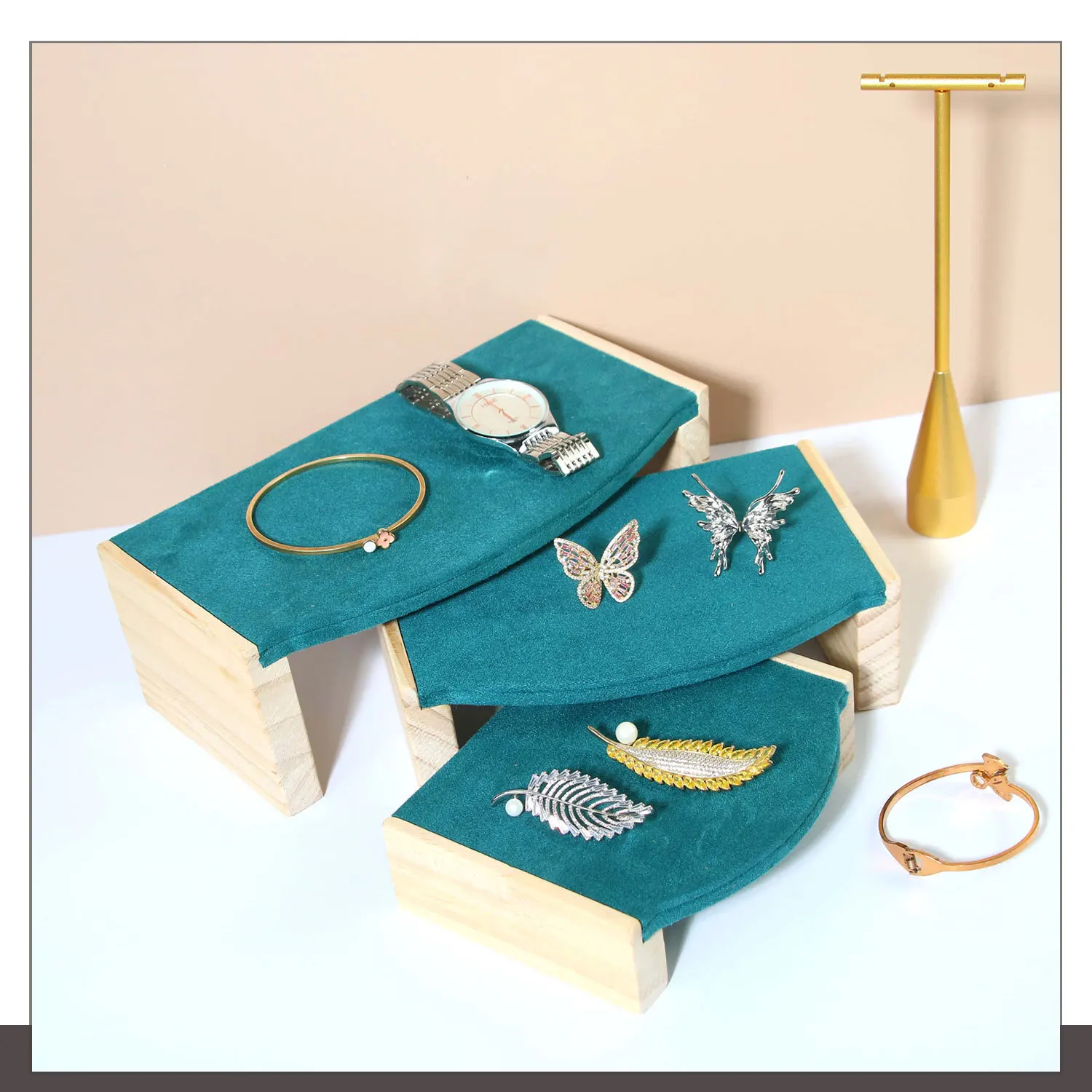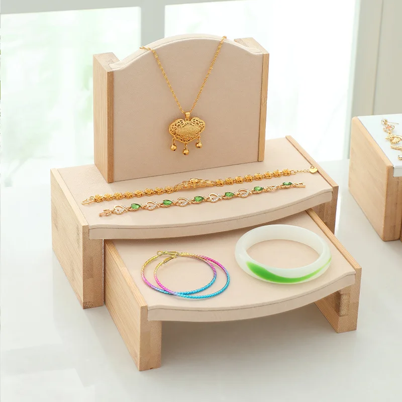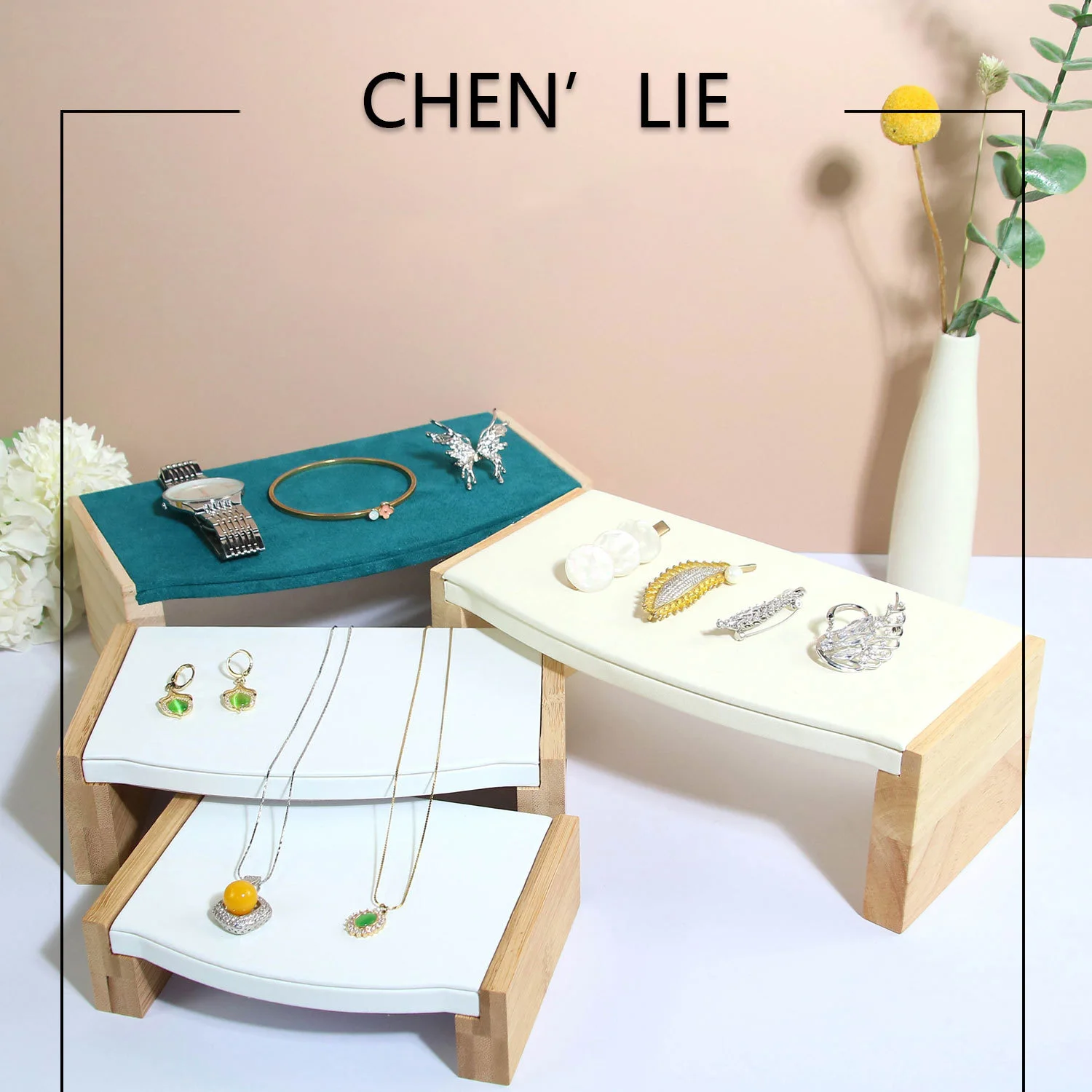 3Pc/Set Solid Wood Pendant Necklace Display Stand Velvet/PU Leather Bracelet Rings Earings Jewelry Display Organizer Rack