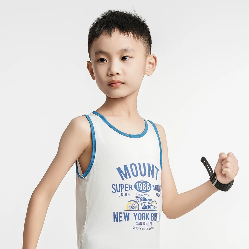 3Pcs 2024 New Boys Tank Tops White Kids Casual Vest Soft Undershirt Children Printed Sleeveless T-Shirt Summer Clothes Size 4-14