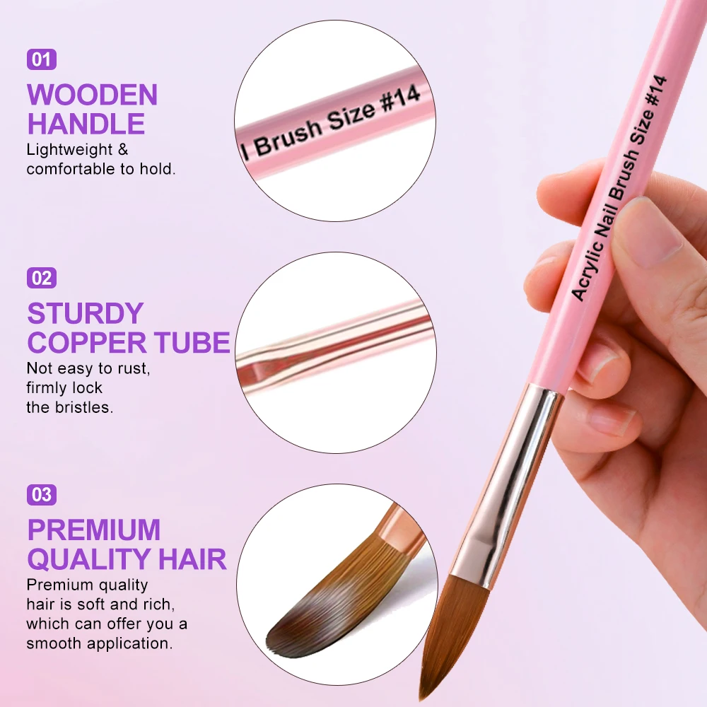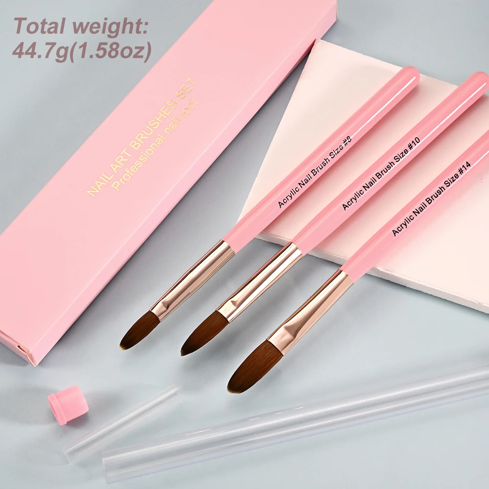 11 reviews for 3Pcs Acrylic Application Nail Brush 8/10/14# Professional Pink Nail Brushes for Acrylic Powder Extension Nail Art 3D Carving Pen