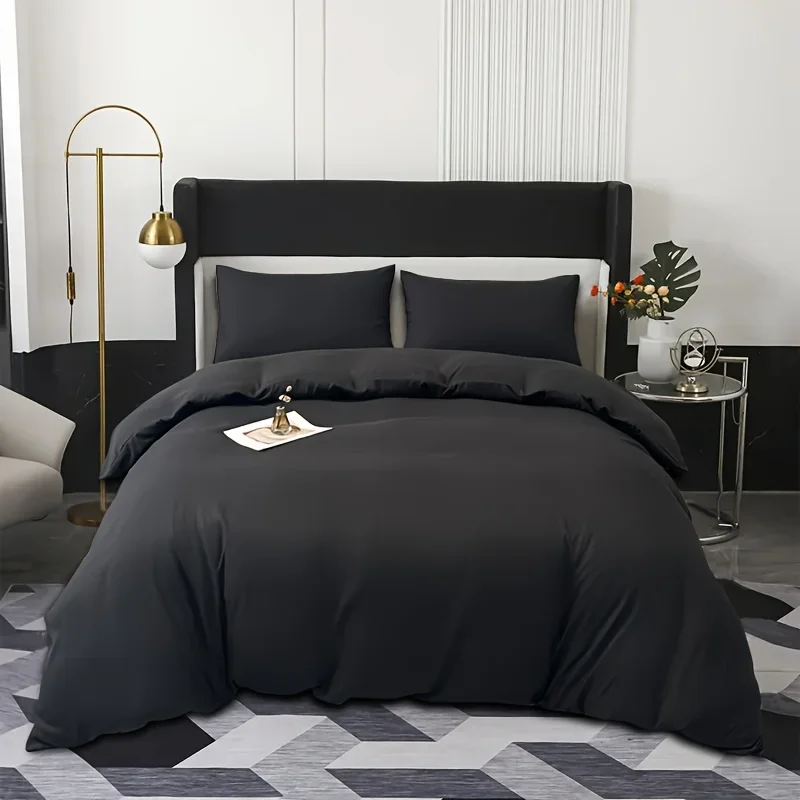 3pcs Brushed Solid Color Duvet Cover, duvet cover*1+Pillowcases*2, Polyester Fabric, All Season Bedding