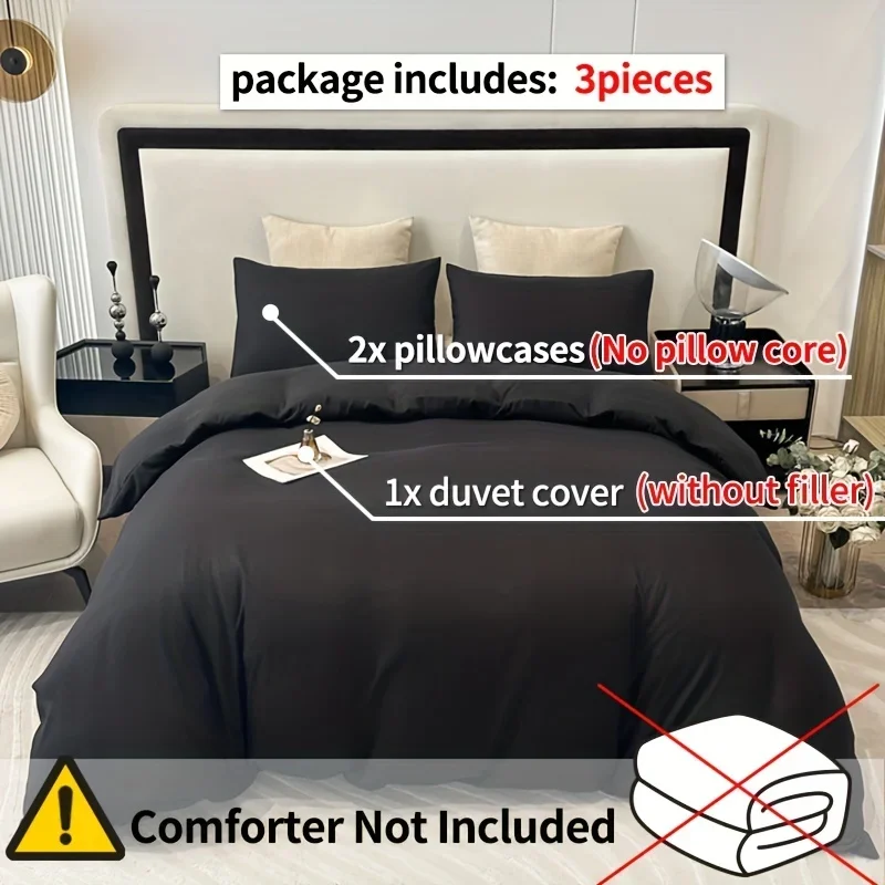 3pcs Brushed Solid Color Duvet Cover, duvet cover*1+Pillowcases*2, Polyester Fabric, All Season Bedding