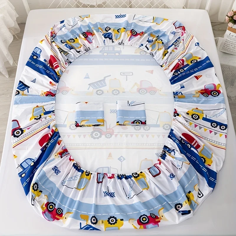 3pcs Cartoon Engineering Car Pattern Fitted Sheet Set – Soft, Breathable, and Hypoallergenic Bedding Sheet Set Vibrant-Perfect