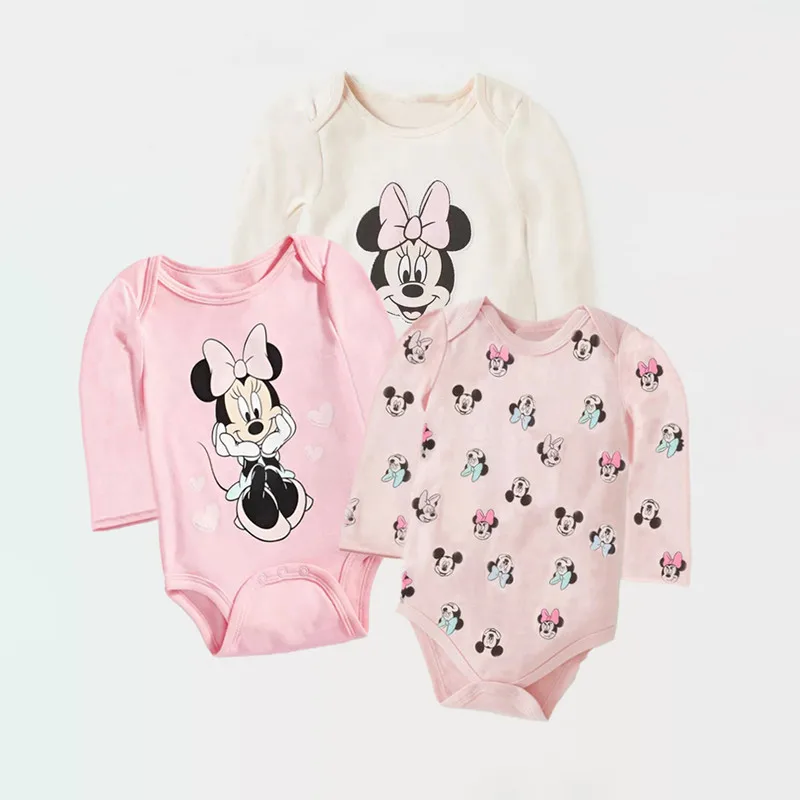3Pcs Lovely Infant Minnie Printed Bodysuits Cute Mickey Mouse Jumpsuits Spring Summer Newborn Baby One-piece Clothes