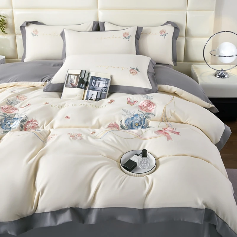 3pcs Polyester Duvet Cover Set (1*Duvet Cover + 2*Pillowcase, Without Core), Elegant Flower Embroidered Bedding Set