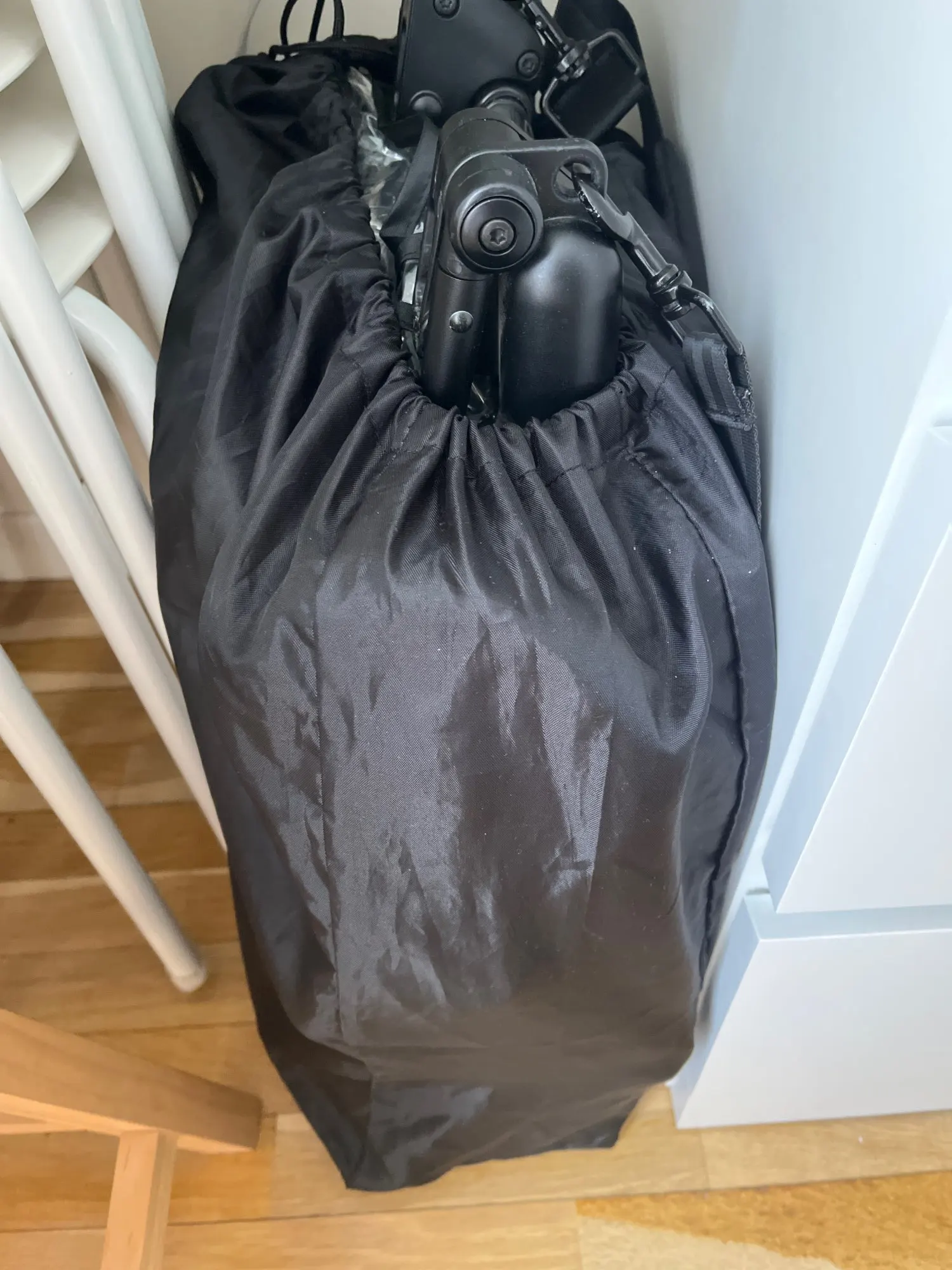 GENIAL nothing to complain about, top of the top, fits perfectly on the yo-yo, extended position at the top, the small pocket at the back is ultra-deep for storing things, just perfect.