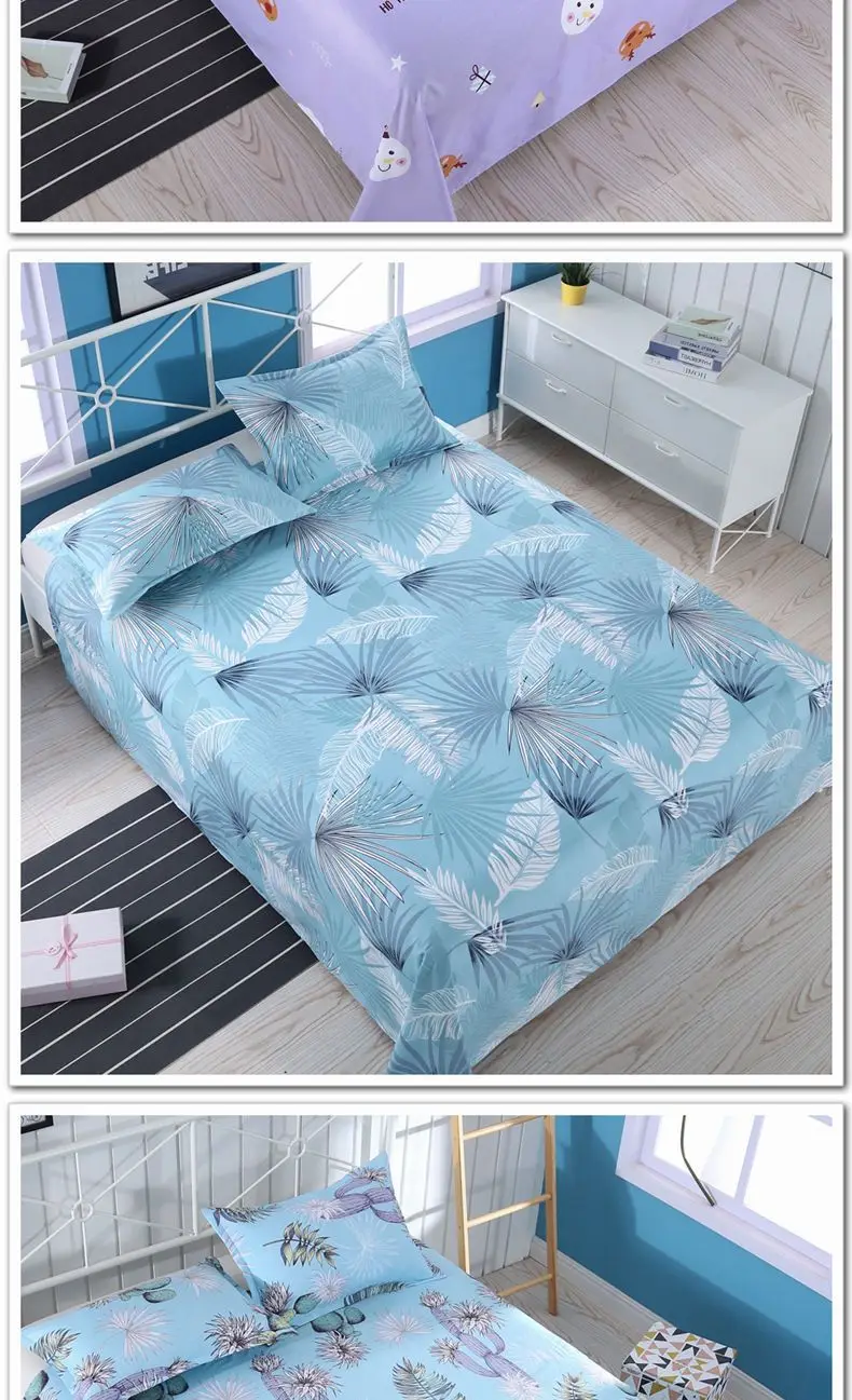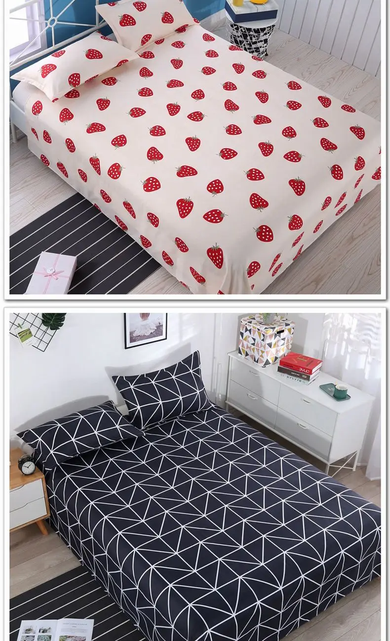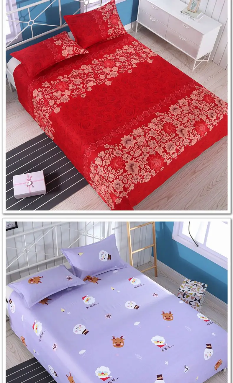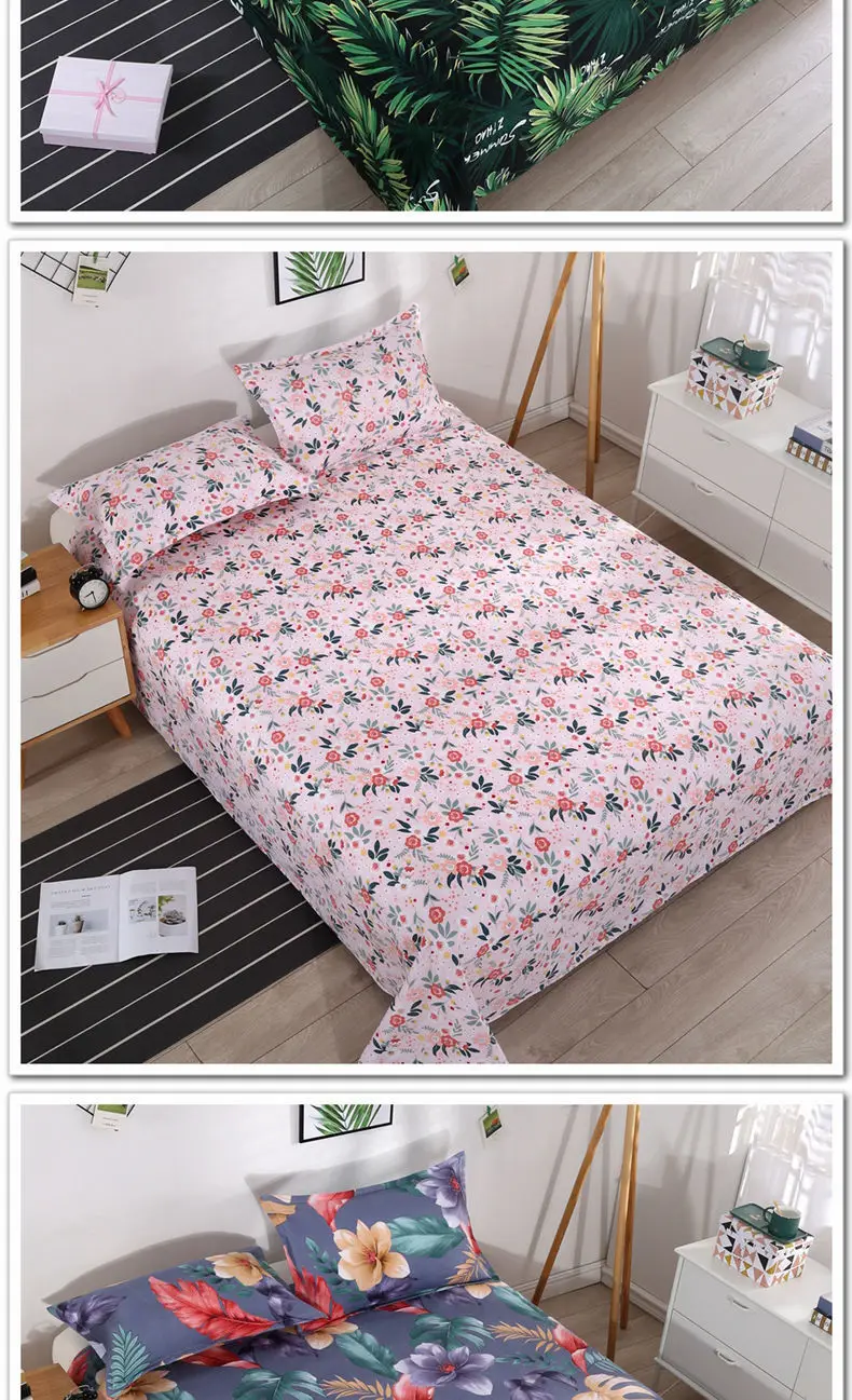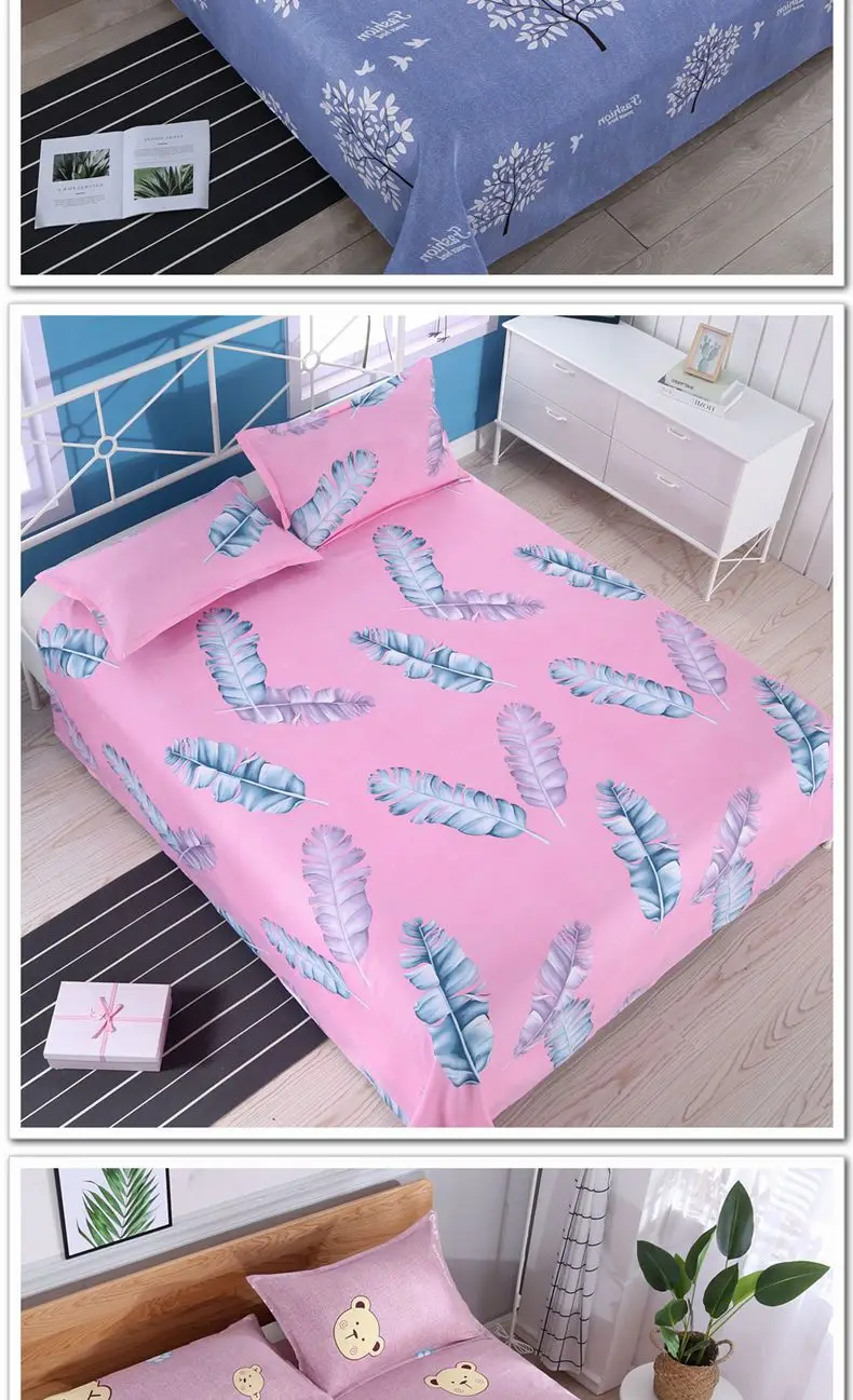 3pcs/Set Home Textile Bed Sheet Set with Pillowcases Cotton Material Lovers Home Room Bedding Flat Sheet Bed Sheet Set