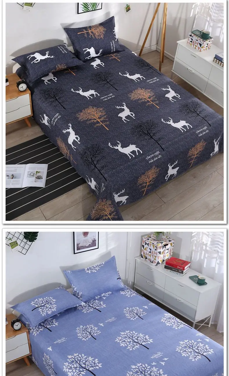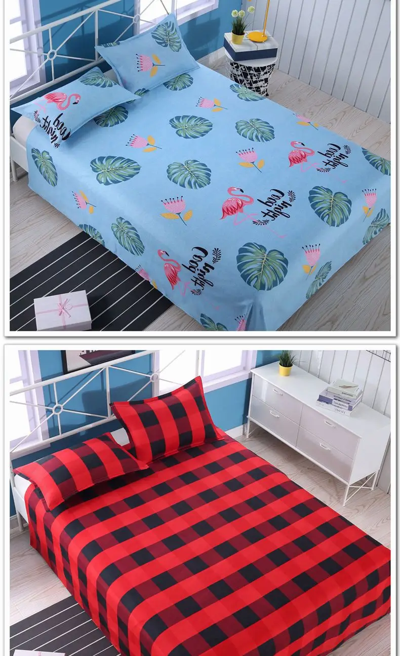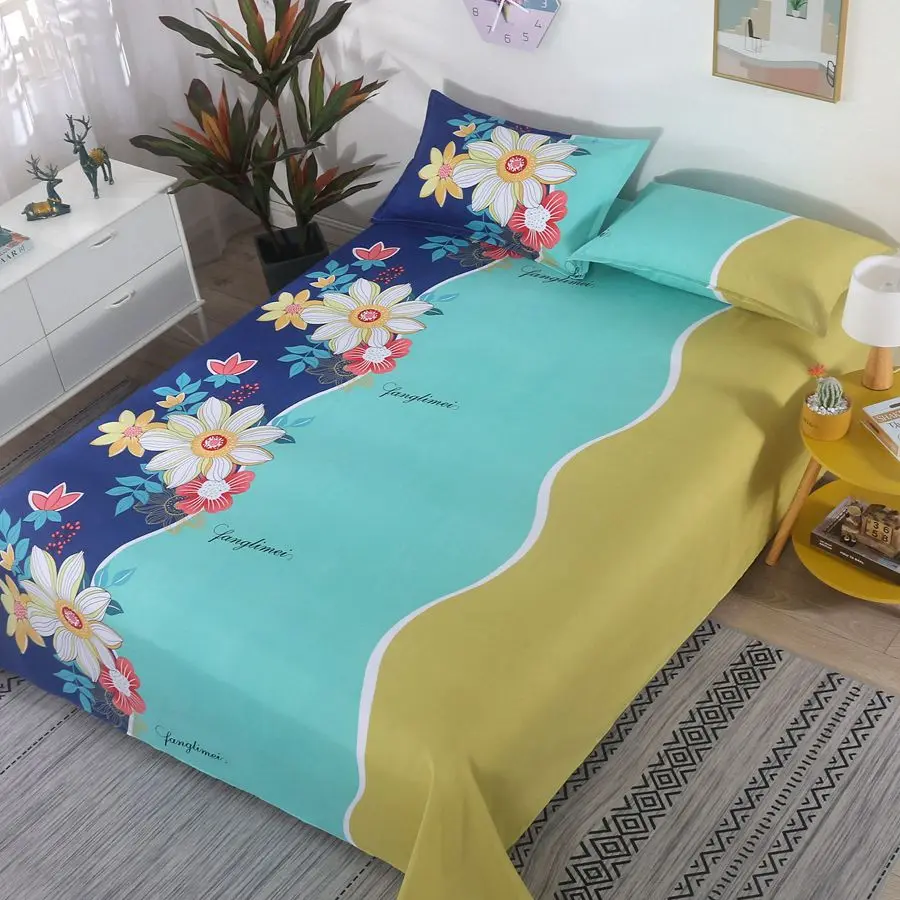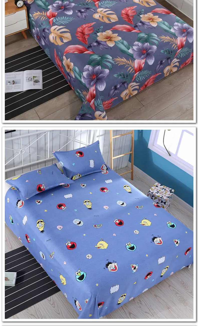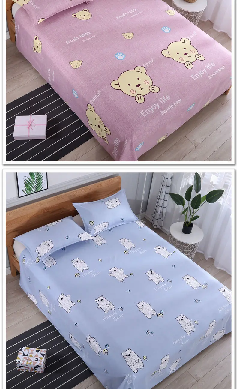 3pcs/Set Home Textile Bed Sheet Set with Pillowcases Cotton Material Lovers Home Room Bedding Flat Sheet Bed Sheet Set