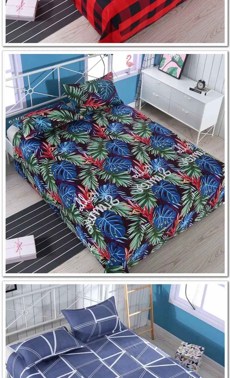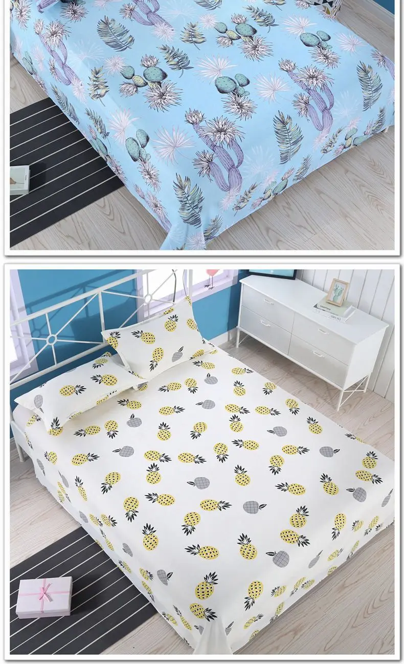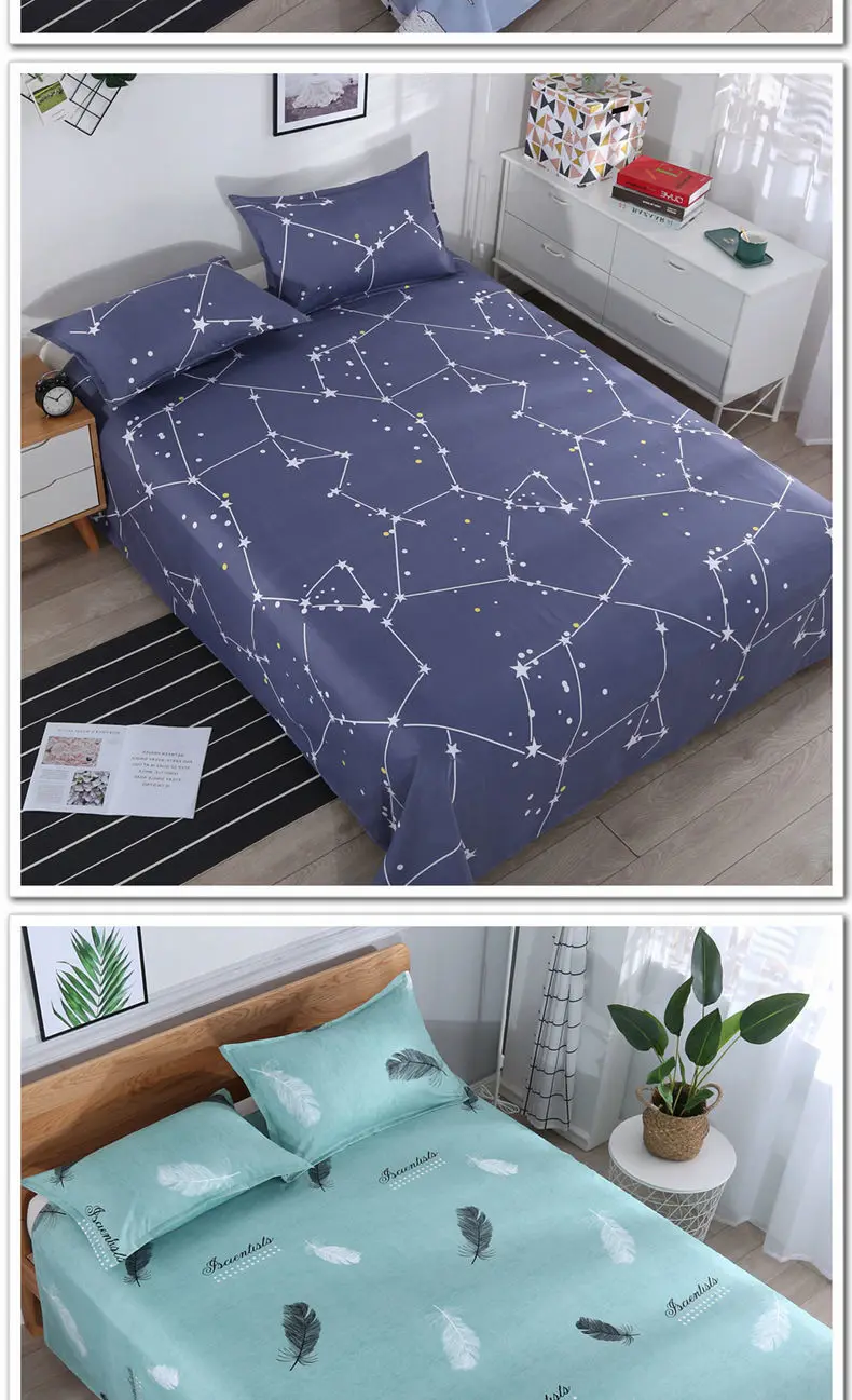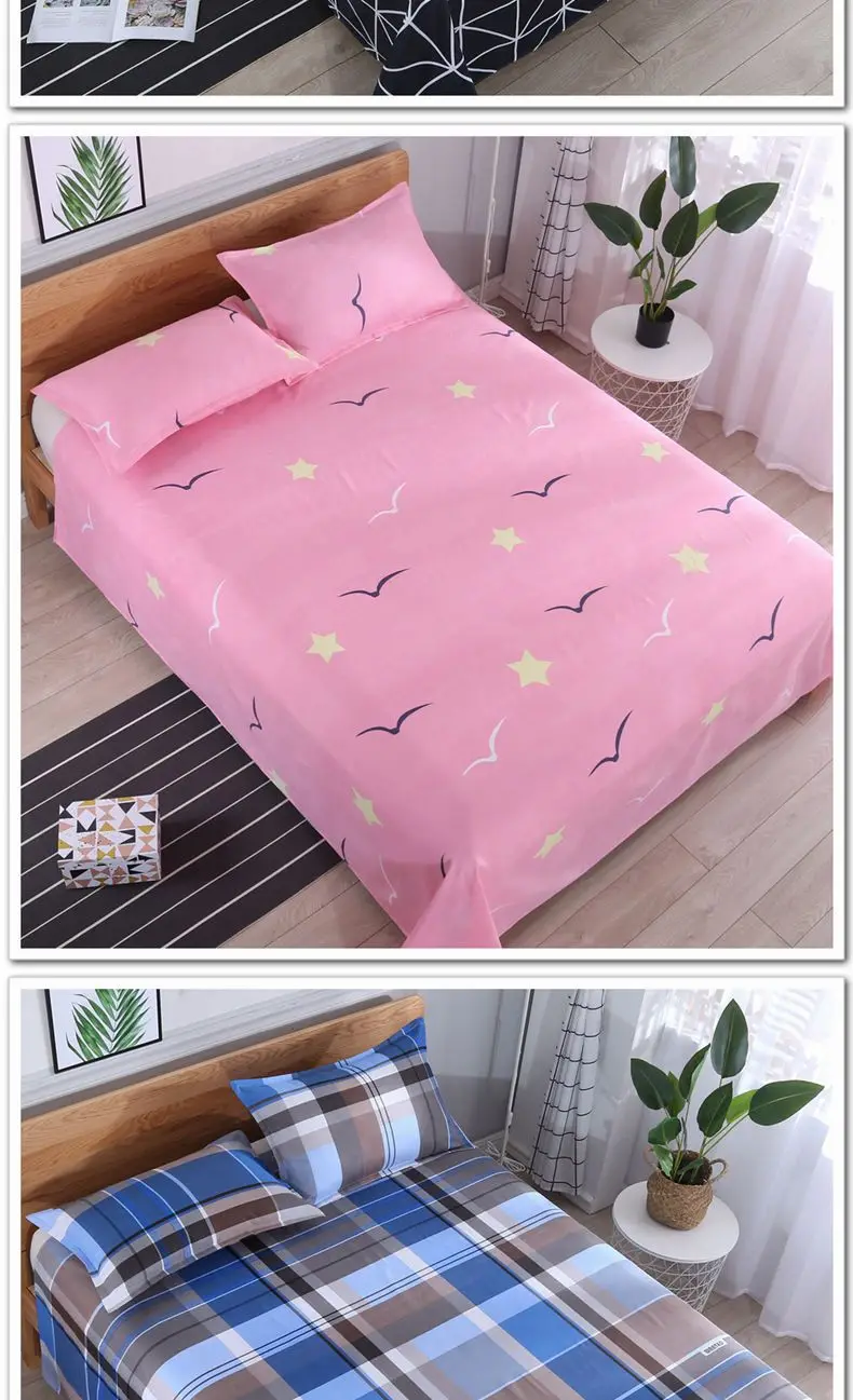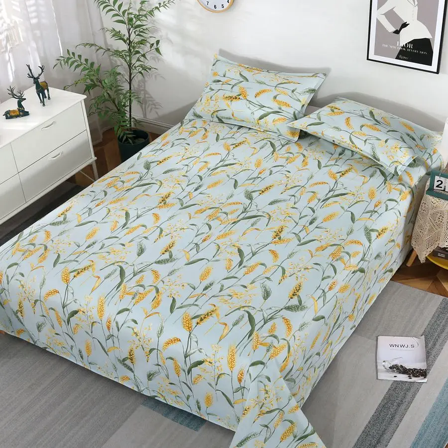 3pcs/Set Home Textile Bed Sheet Set with Pillowcases Cotton Material Lovers Home Room Bedding Flat Sheet Bed Sheet Set