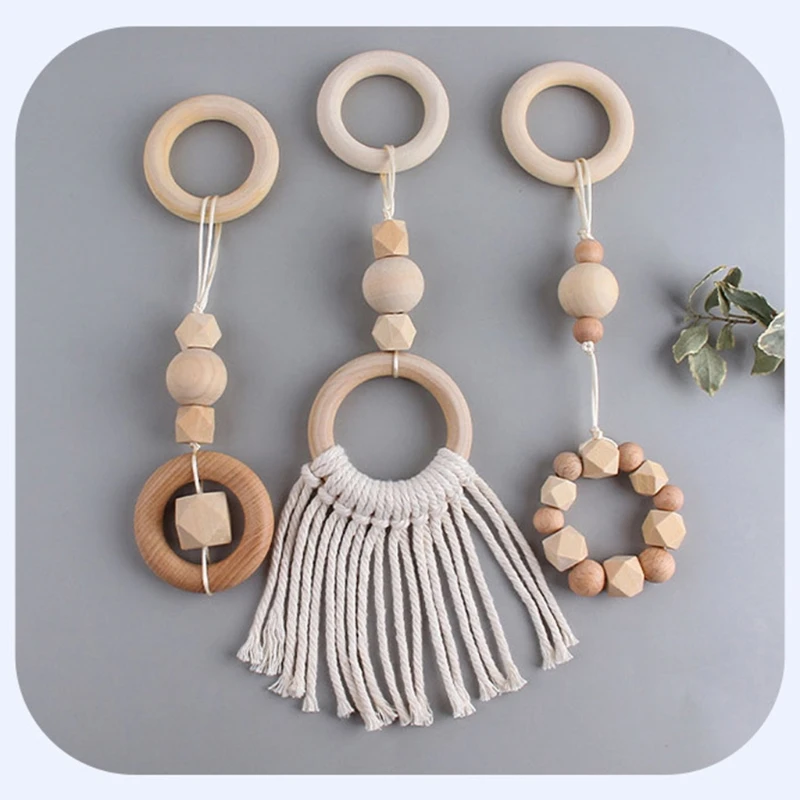 3Pcs/Set Nordic Style Baby Play Gym Frame Pendants Wooden Activity Gym Frame Stroller Hanging Pendants Baby Play Toys