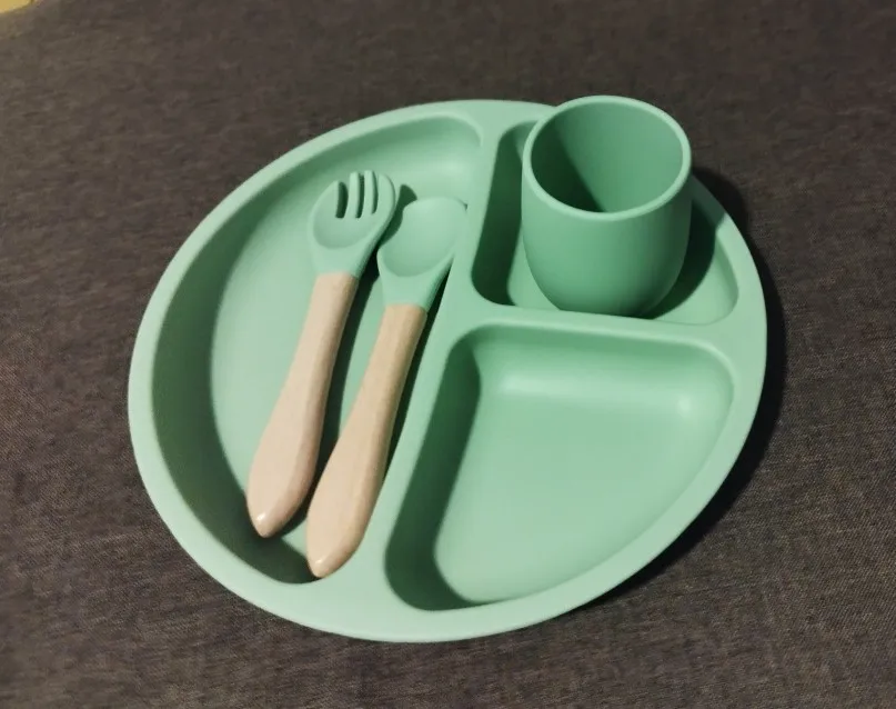 11 reviews for 3PCS Silicone Baby Feeding Set BPA Free Suction Bowl Divided Plate Spoon Fork Silicone Bibs Children Tablewar