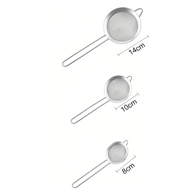 3pcs Stainless Steel Fine Mesh Food Strainer Sifter For Baking With Handle Flour Sieve Sifter Juice Soy Milk Baking Kitchen Tool