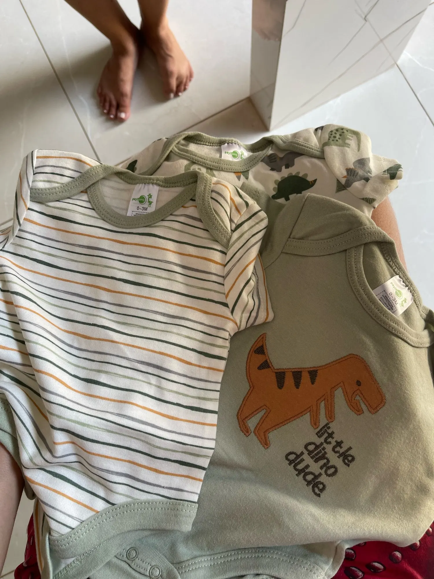 13 reviews for 3PCS Summer Baby Bodysuit Three piece Set with Cartoon Dinosaur Pattern and Stripe Pattern Button Design for 0-9 Months Old Boys