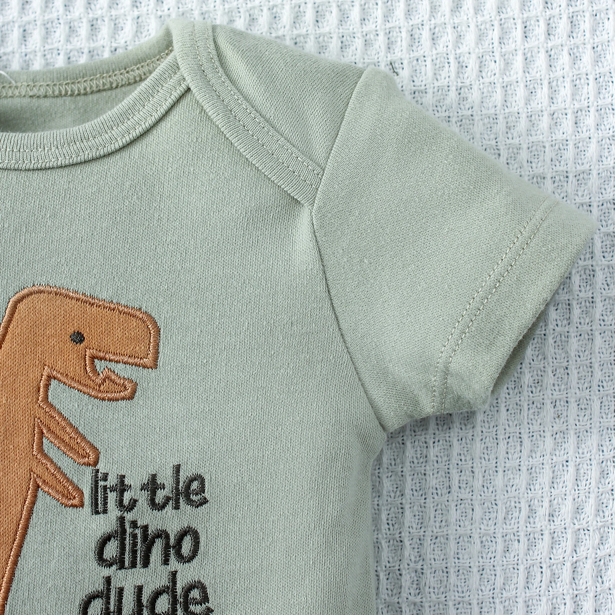 3PCS Summer Baby Bodysuit Three piece Set with Cartoon Dinosaur Pattern and Stripe Pattern Button Design for 0-9 Months Old Boys