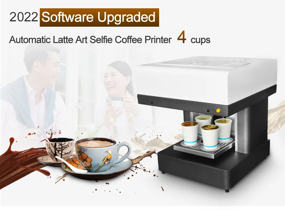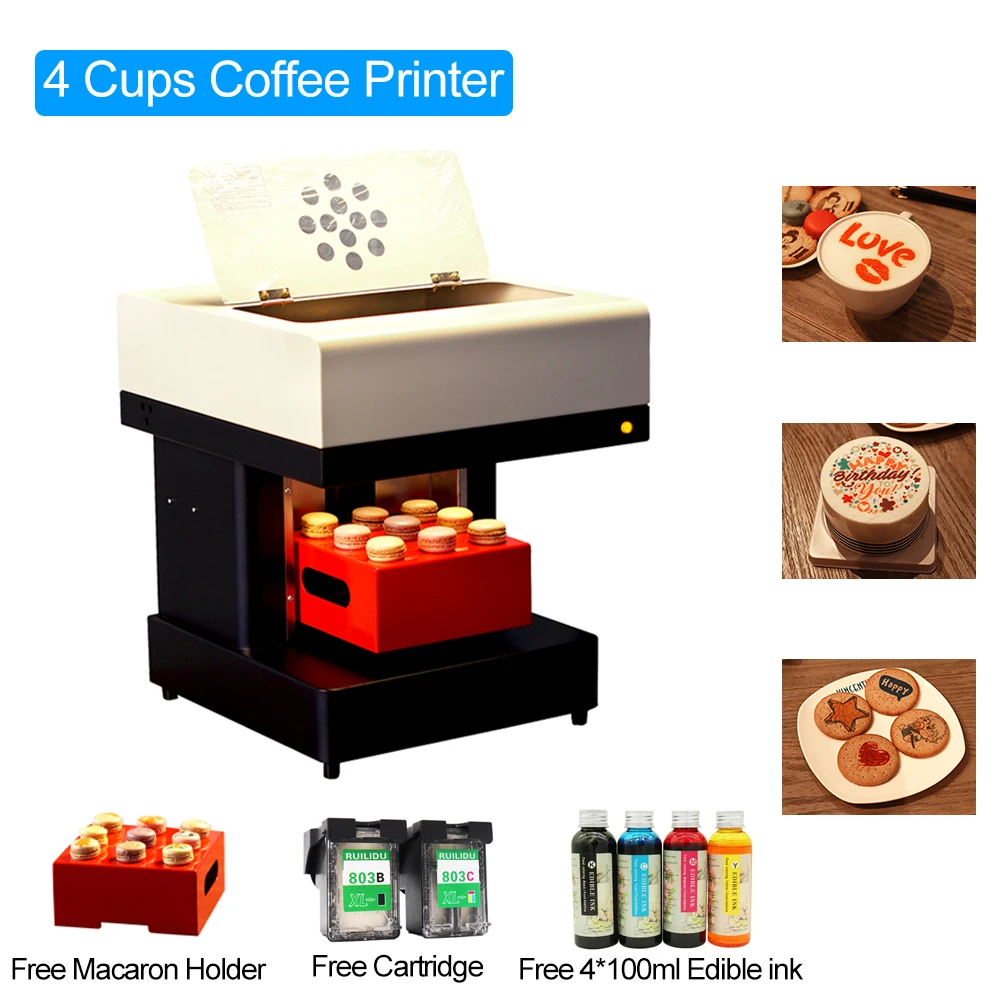 4 Cups Coffee Printer Automatic Photo Printer Coffee Printer for Cake Cappuccino Biscuits Macaroon Candies Food Printing Machine