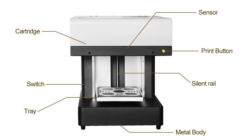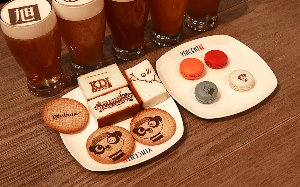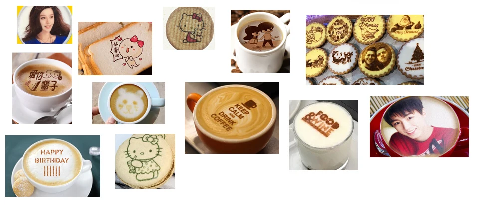 the coffee printer can print coffee ,beer ,biscuits, Macaron, cake , bread and so on