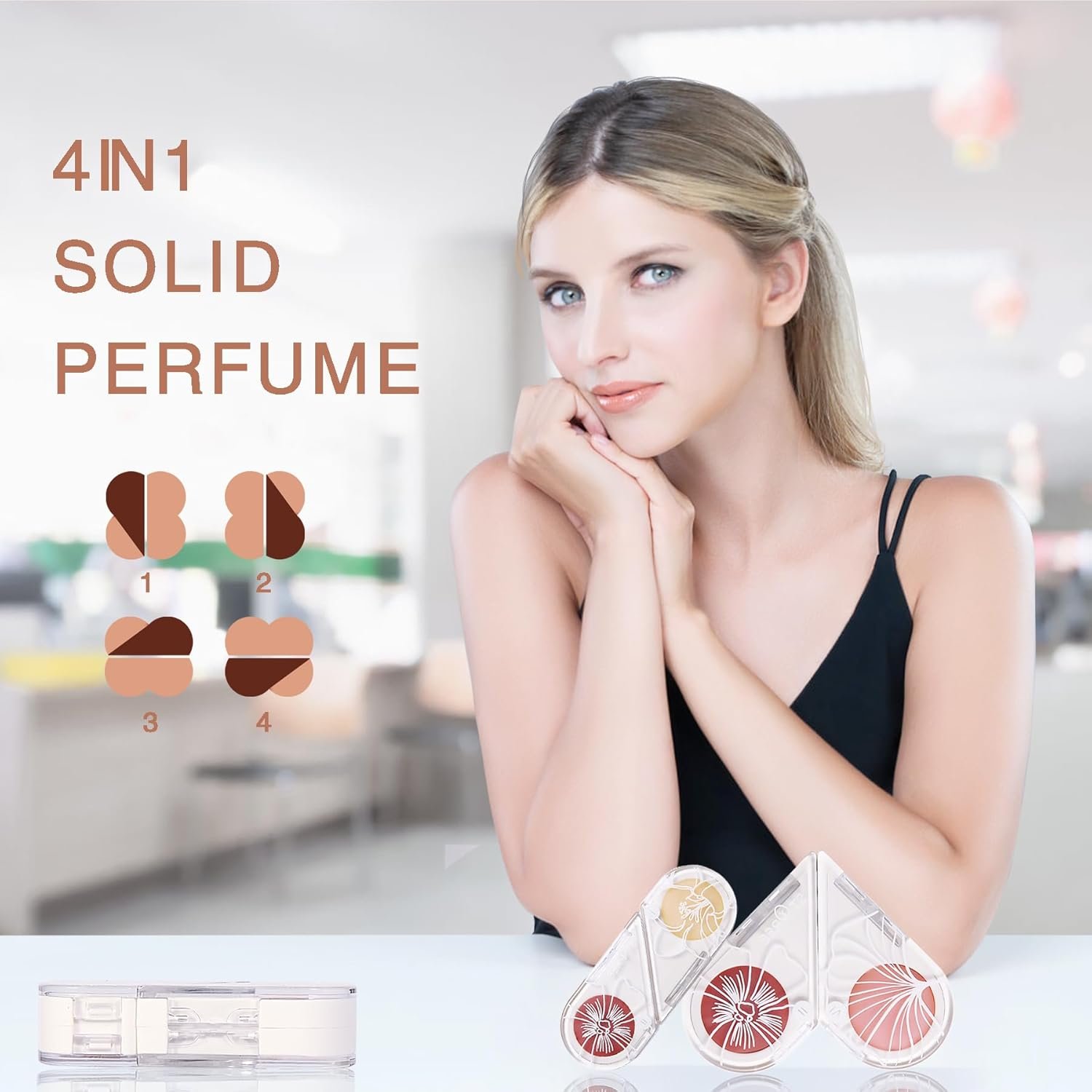 4-in-1 Solid Perfume for Women – Changeable Shape Pheromone-Infused Balm Cologne in Travel Size with 4 Unique Scents