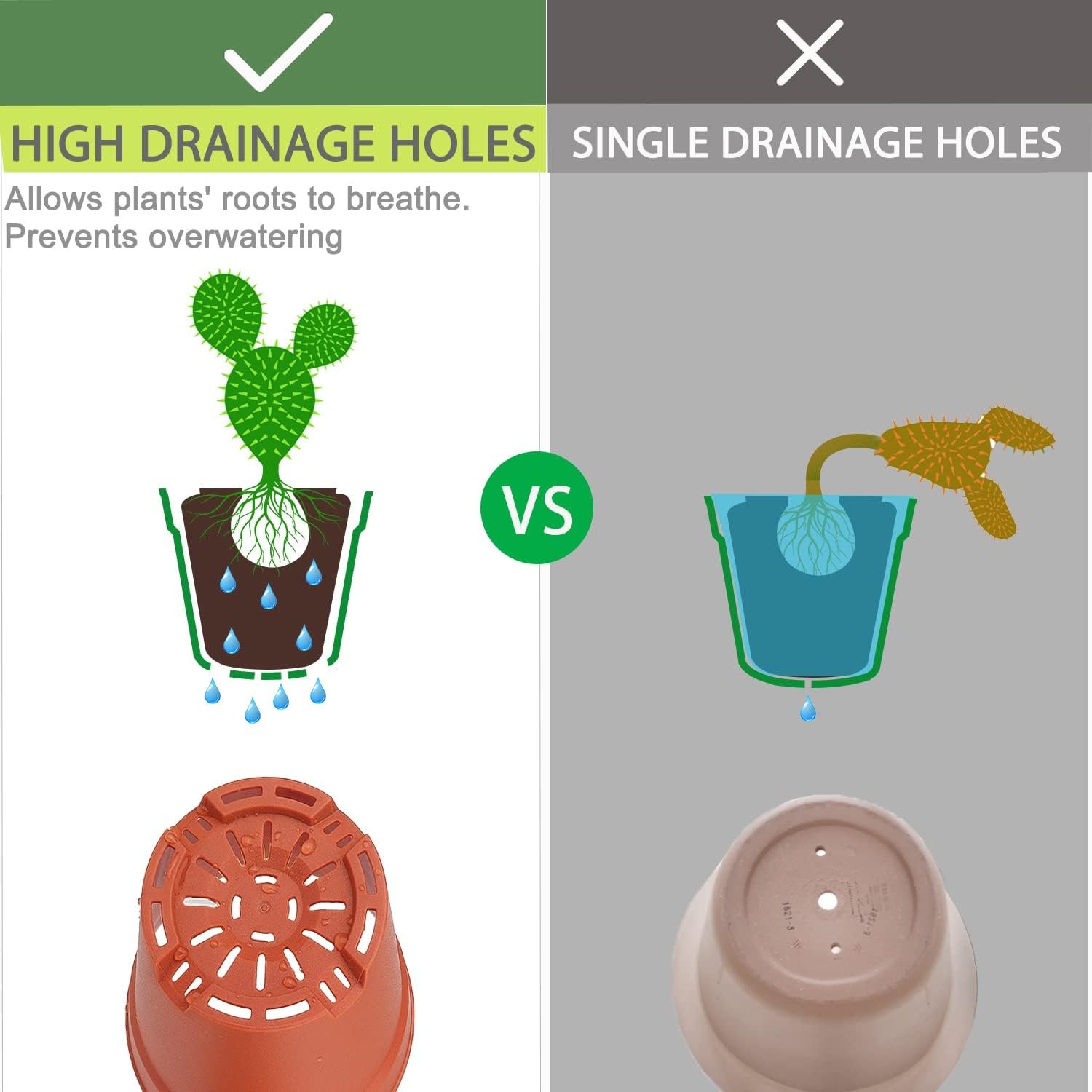 [Small Planters with Drainage Holes] We improved the drainage holes, thickened the bottom, plants can breathe freely, prevent excessive watering, maintain soil drainage and ventilation, and ensure that plants do not rot roots. With trays to catch the extra water and keep the table clean.