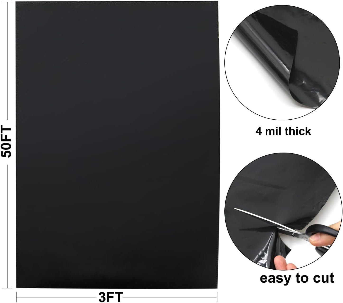 4 Mil Black Plastic Sheeting Weed Barrier Landscape Fabric Heavy Duty Plastic Roll for Garden Multi Use Polyethylene Sheeting, 3FT x 50FT