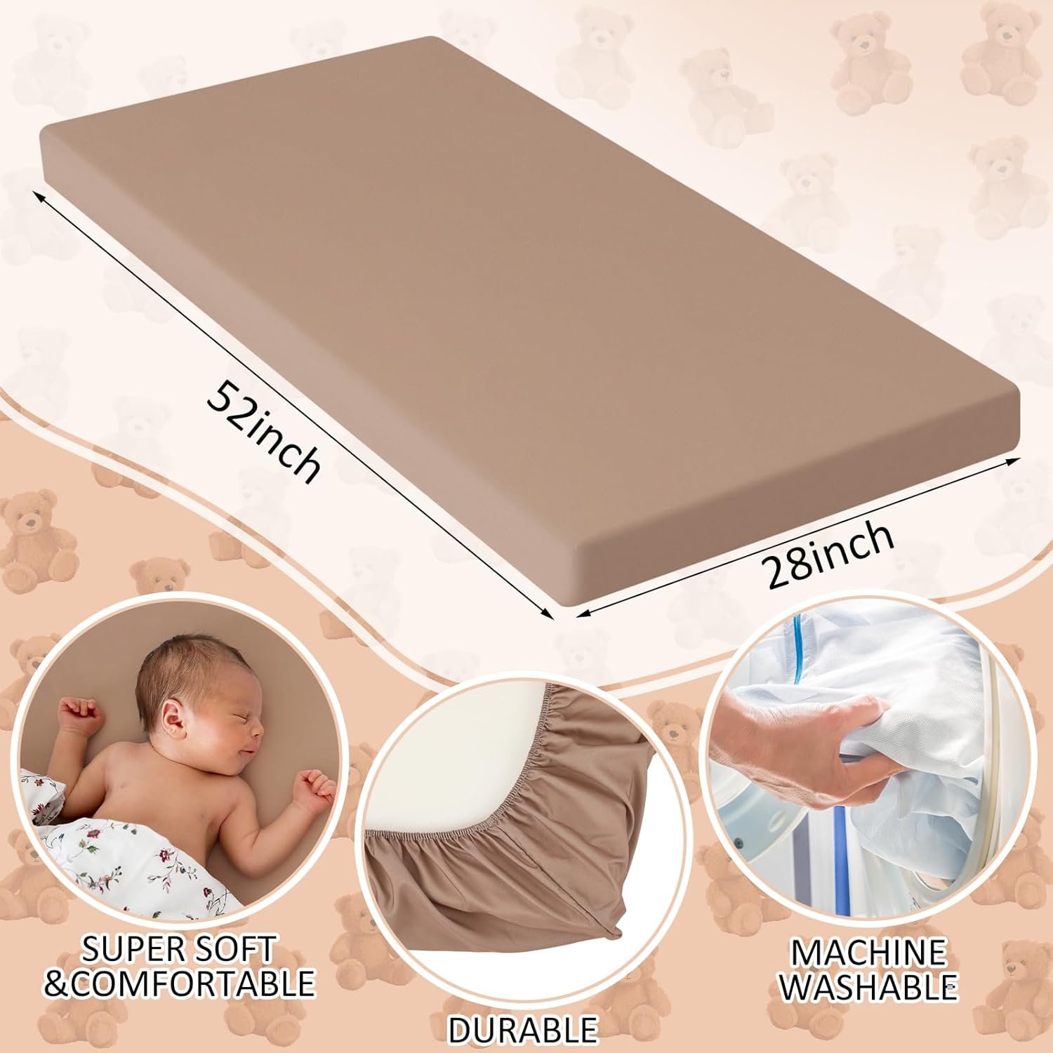 Product Size: these baby sheets are approximately 28 x 52 inches, standard size suitable for most standard crib mattresses, with 9-inch deep pockets and elastic trim to provide a safe and comfortable fit, and can easily be placed on the mattress