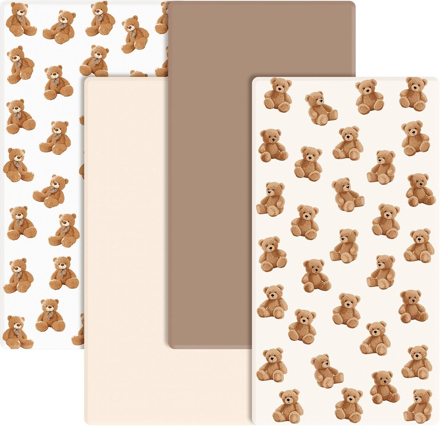 4 Pack Bear Baby Crib Fitted Sheet 52” x 28” Bear Stretchy Neutral Fitted Crib Mattress Sheet Baby Bedding for Standard Mattress Gift Set