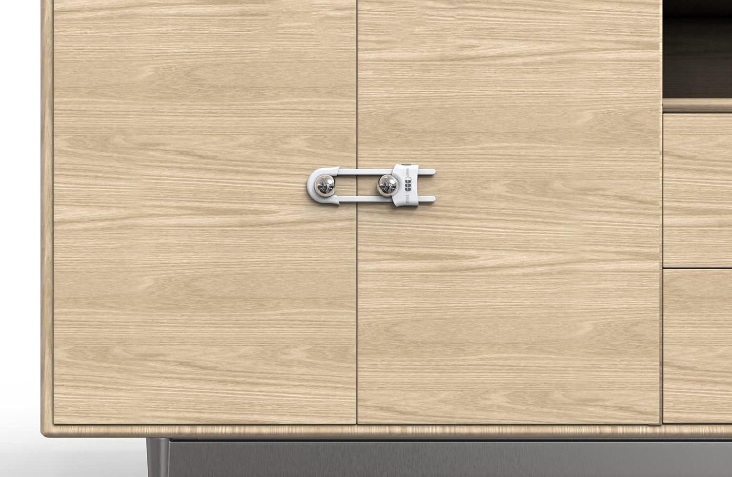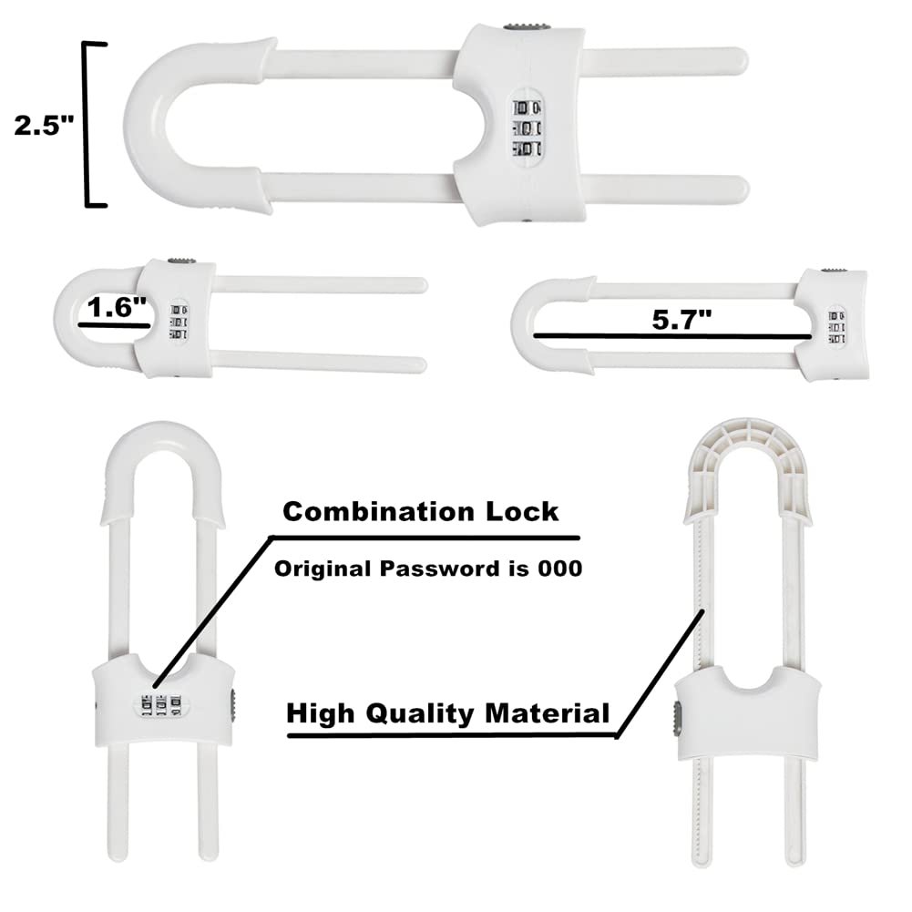 4 PACK AND HIGH QUALITY: The package includes 4 portable baby sliding cabinet door code locks. Made of safe sturdy ABS plastic with no change white color, the U-shaped sliding child proof cabinet locks are no smell and will not fade