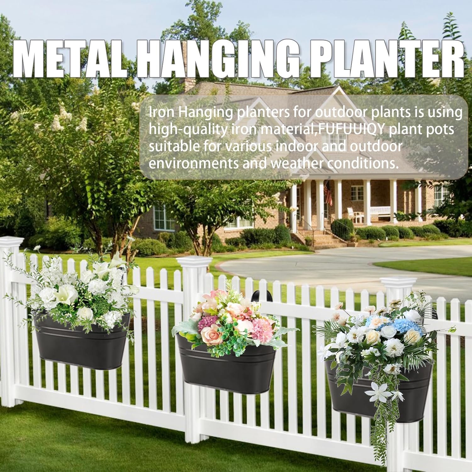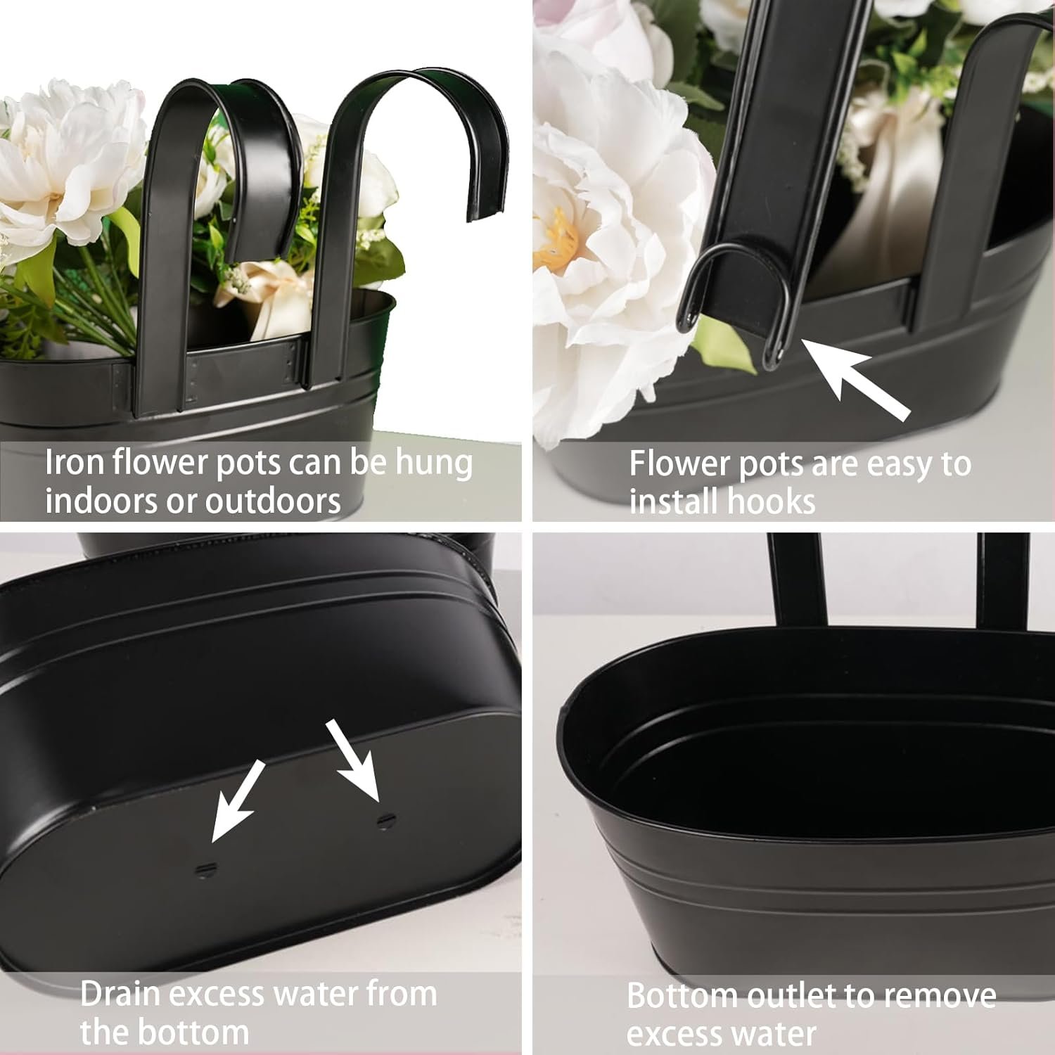 STURDY & LIGHTWEIGHT:Hanging planters for outdoor plants is using high-quality iron material,ensuring durability,strength and resistance to rust.Fence planters suitable for various indoor and outdoor environments and weather conditions.