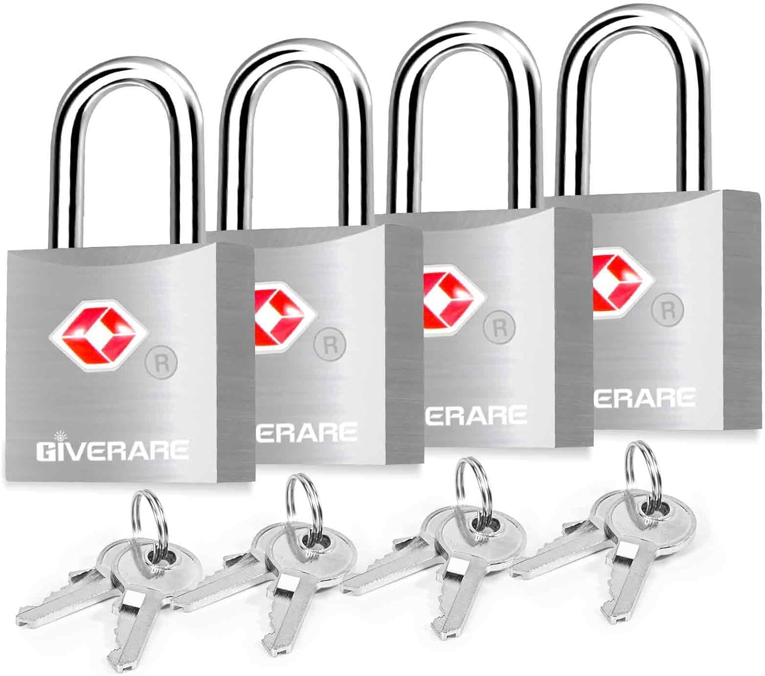 4 Pack TSA Approved Travel Luggage Locks with Keys, Aluminum Alloy Keyed Padlock, Small Metal Suitcase Lock, Weatherproof Padlocks for Backpack, Gym Locker, Bag, Case, Jewelry Box, Anti Theft-Silver