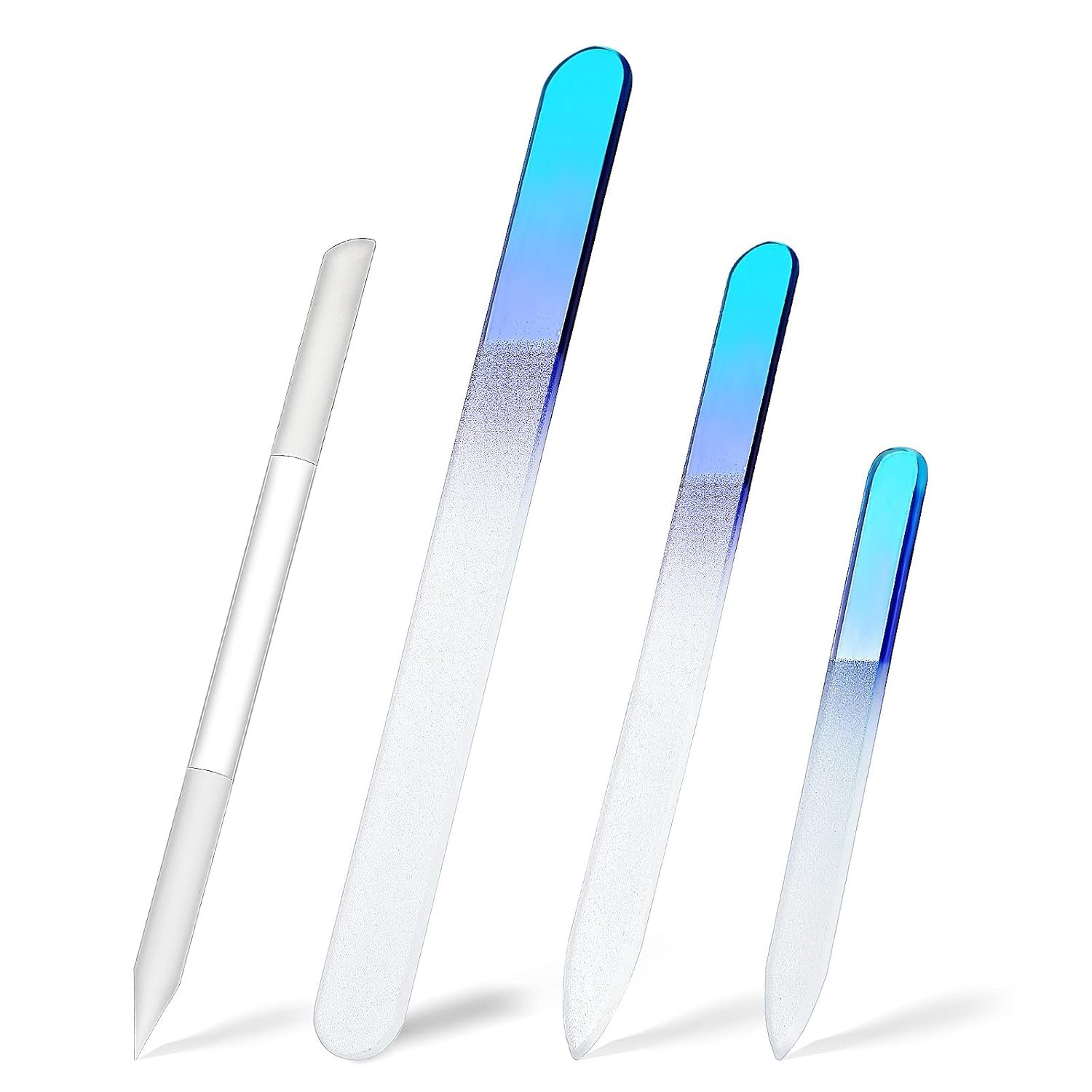 4 Pcs Glass Nail File Set Nail Files and Cuticle Pusher Double Sided Crystal Fingernail Buffers for Women Natural Fingernail Manicure Pedicure Toenail Buffer Cuticle Trimmer