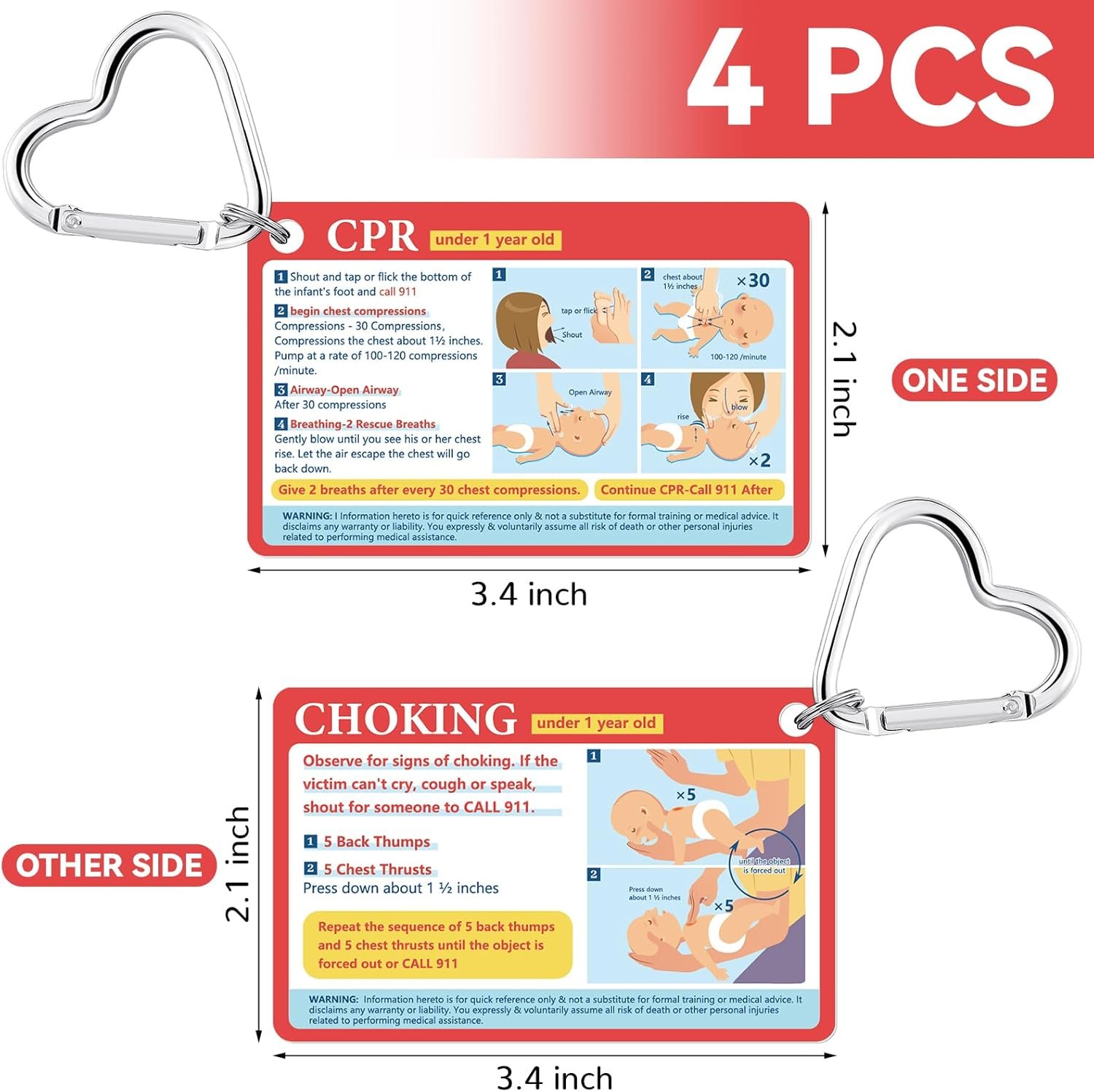 Package Information: you will receive 4 cards, about infant CPR and choking instructions, each equipped with a ring with a heart shaped buckle to prepare for life’s emergencies; Enough to meet your use and share