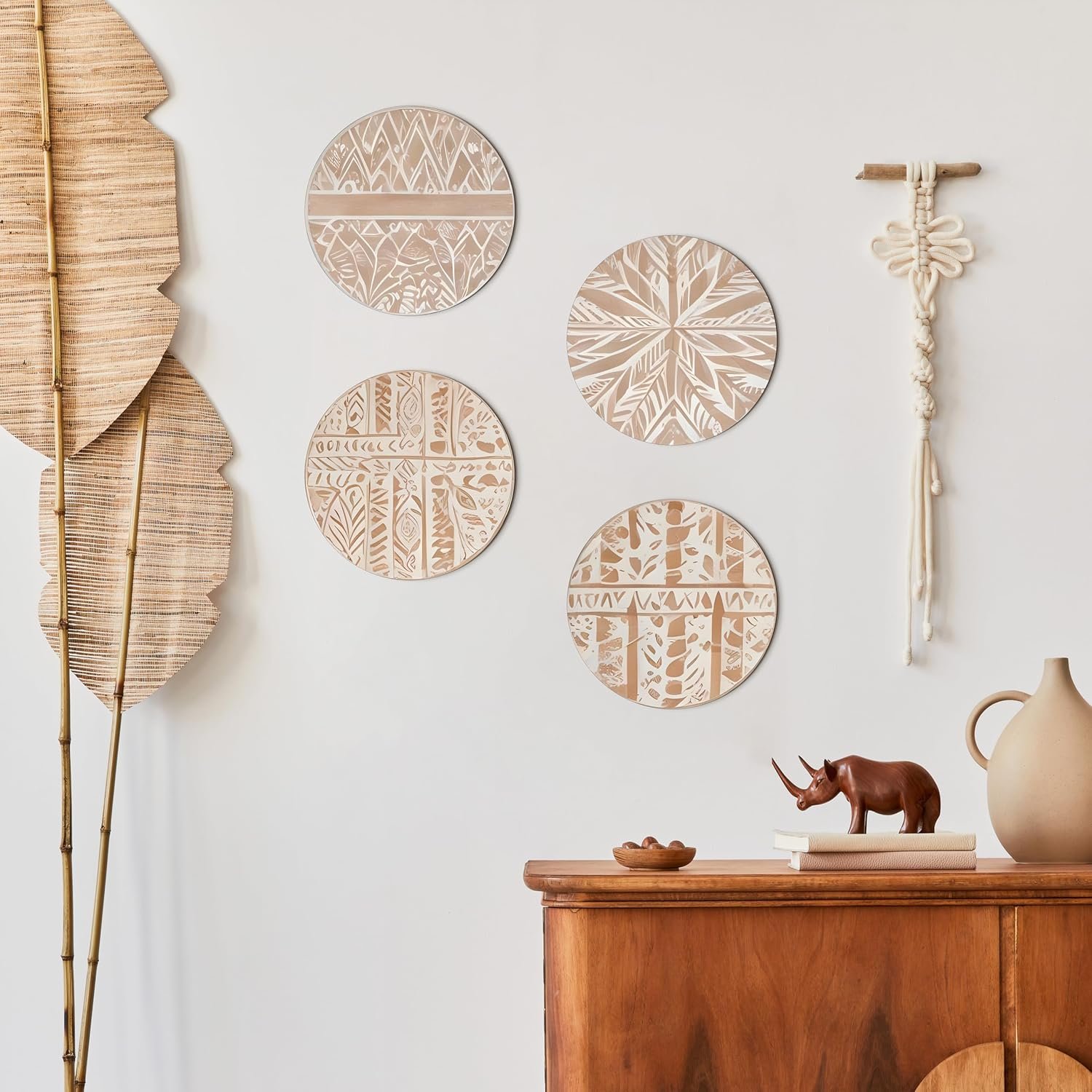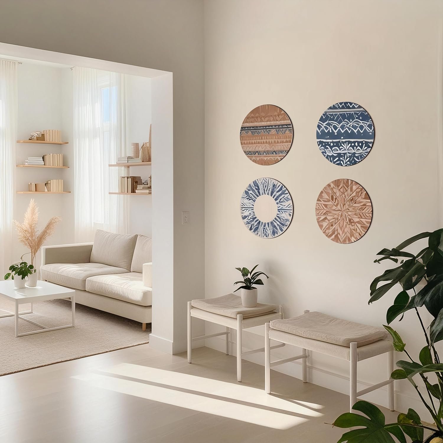 4-Piece Big Size Unique Wall Art Set, Scandinavian Wall Art, Wooden Handmade Textured Wall Painting, Wall Decor, for Living Room, Dining Room, Lobby Bedroom Hotel Office Kitchen, Ready to Hang