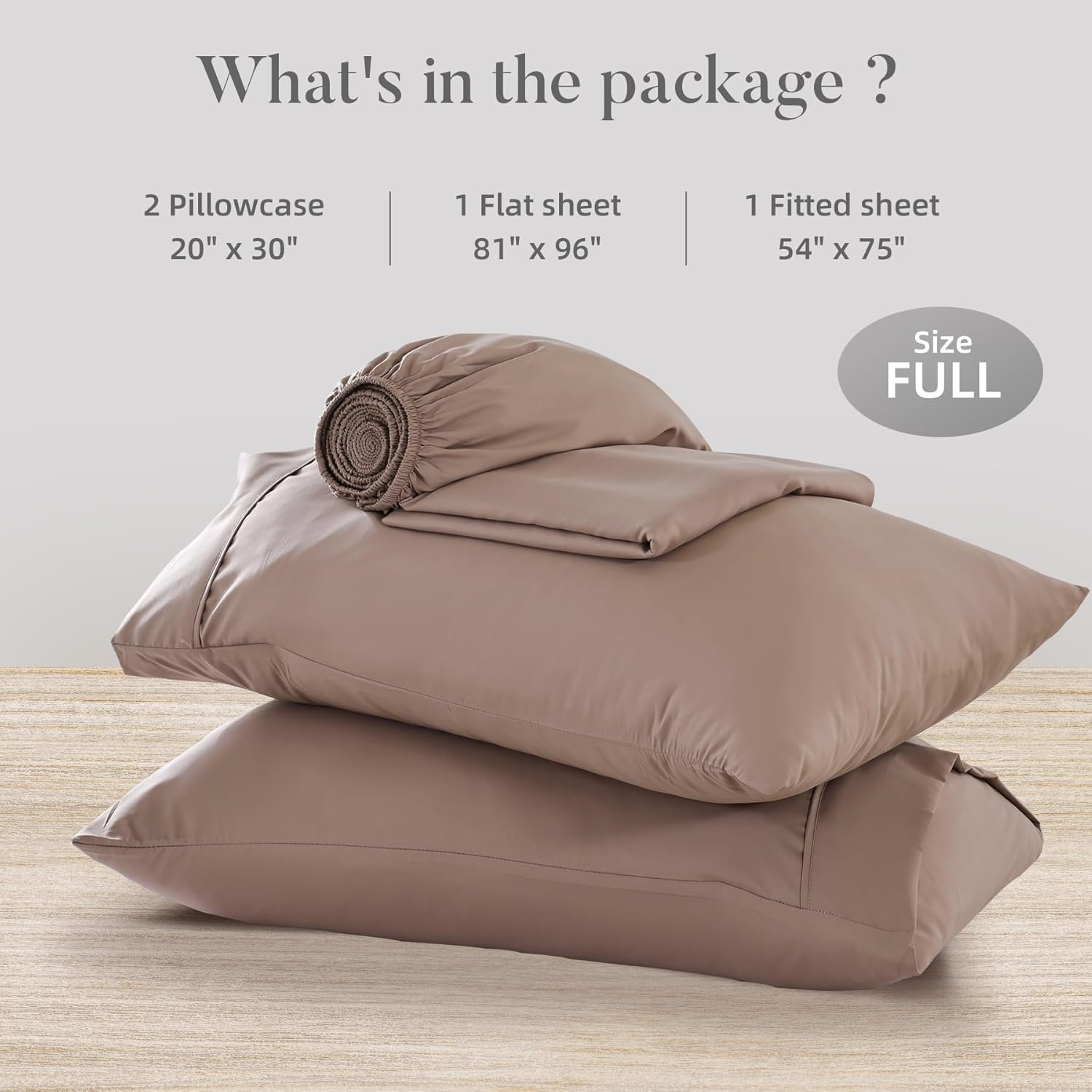 Full Sheets Set: The 4 pieces full cooling sheets include a flat sheet(81″ x 96″), a fitted sheet(54″ x 75″ )with a 16″ deep pocket, and two pillowcases (20″ x 30″); ideal for full-size mattresses, ensuring a luxurious sleep experience.