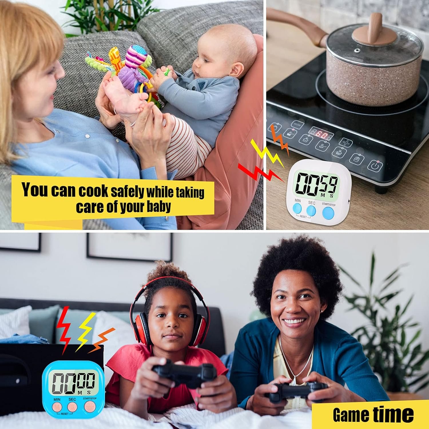 DESIGN: There is a stand behind the timer, which can be placed on any flat place at will; with adsorption magnet, it can be attached to the refrigerator at home, on iron-containing objects; the big bell mouth, the sound is clearer; the hidden hanging hole is convenient for storage.